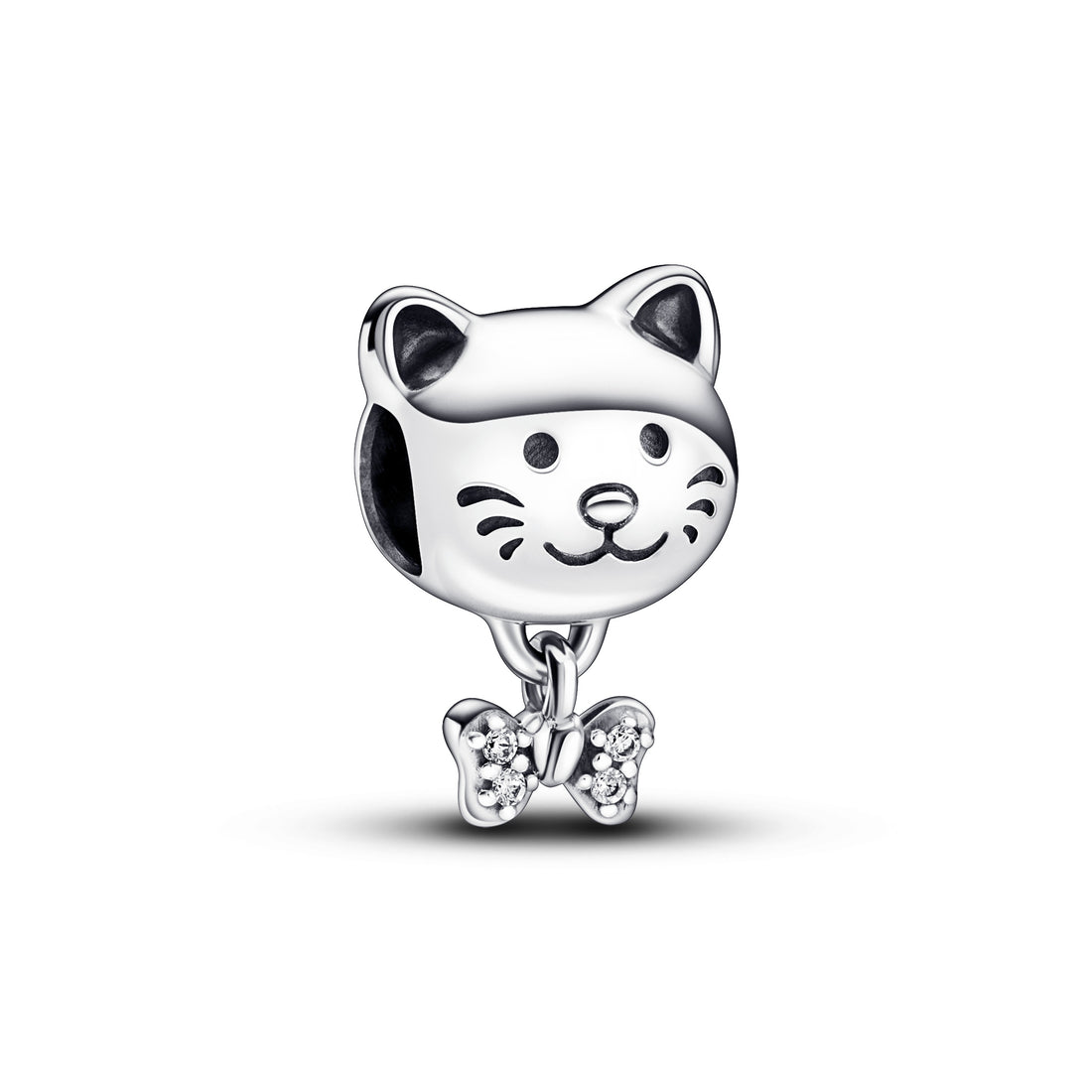 Cat Sterling Silver Charm With Clear Cubic Zirconia