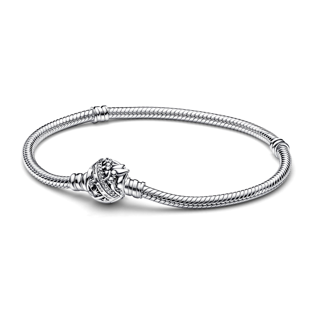 Disney Tinkerbell Snake Chain Sterling Silver Bracelet With Clear Cubic Zirconia