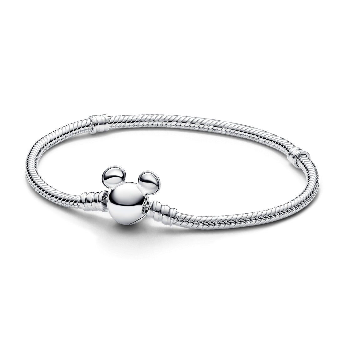 Disney Snake Chain Sterling Silver Bracelet With Mickey Mouse Clasp