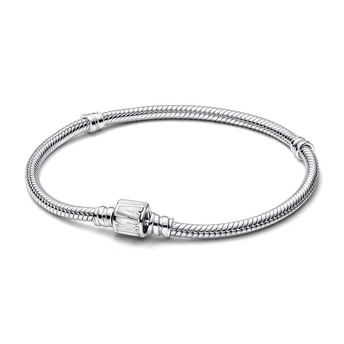 Marvel Snake Chain Sterling Silver Bracelet With Marvel Clasp And White Enamel