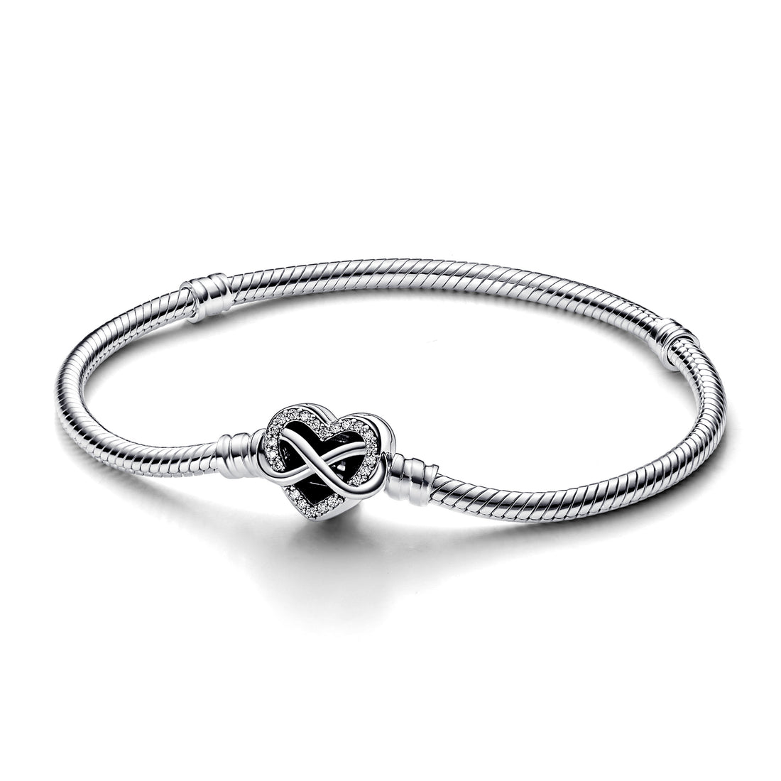 Snake Chain Sterling Silver Bracelet With Infinity Heart Clasp With Clear Cubic Zirconia