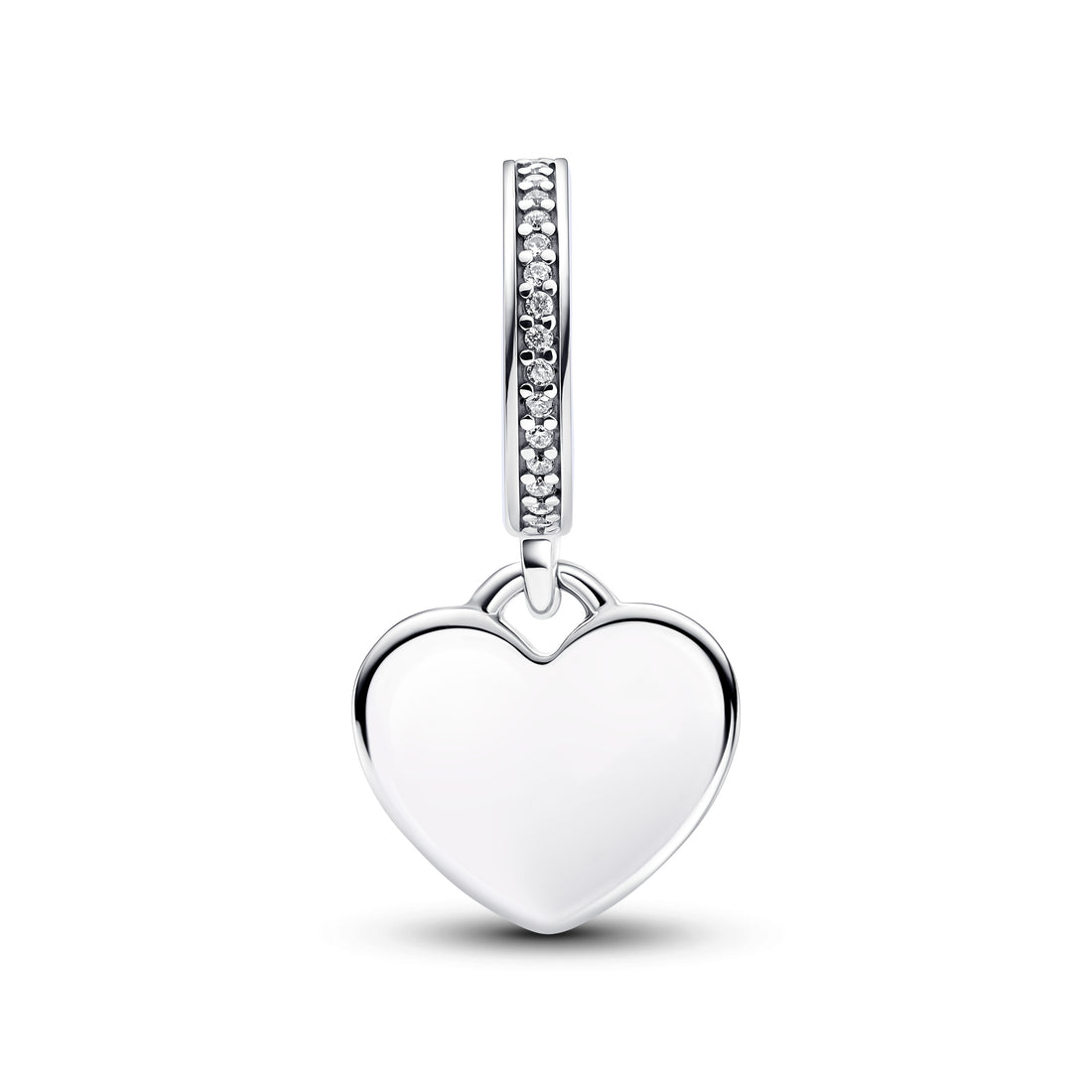 Engravable Heart Sterling Silver Dangle With Clear Cubic Zirconia