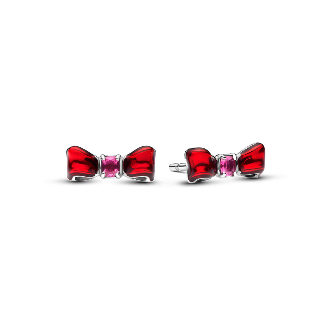 Disney Snow White Bow Sterling Silver Stud Earrings With Fuchsia Rose Crystal And Red Enamel