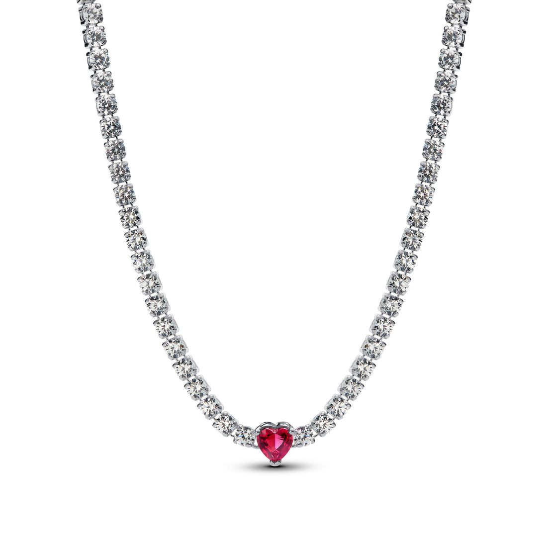 Hearts Sterling Silver Collier With Cherries Jubilee Red Crystal And Clear Cubic Zirconia