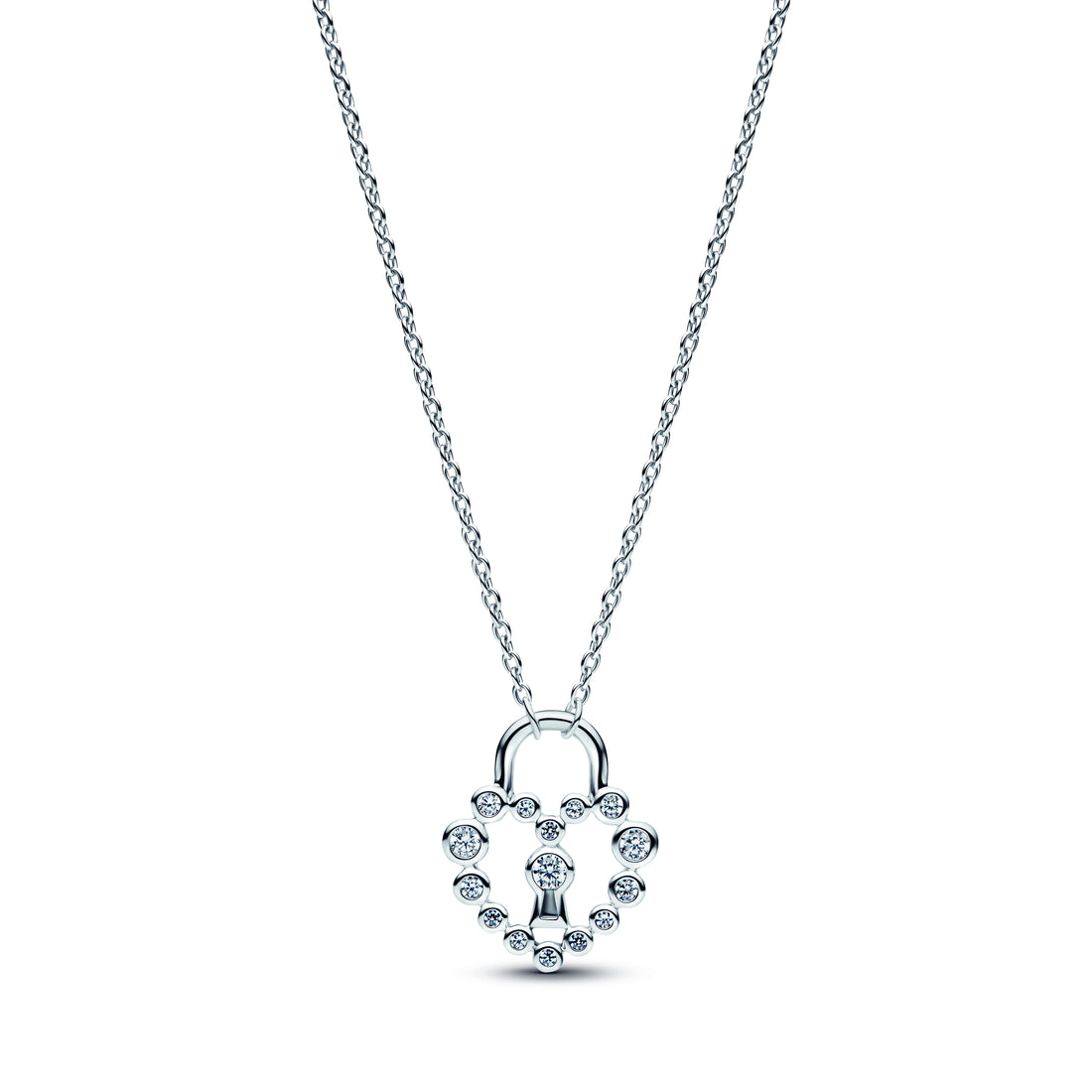 Heart Padlock Sterling Silver Pendant Necklace With Clear Cubic Zirconia