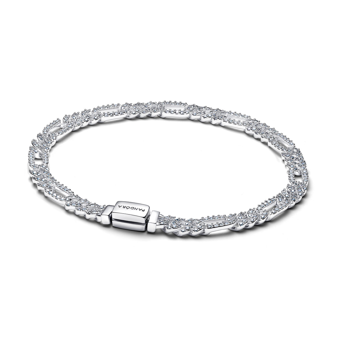 Cuban Chain Sterling Silver Bracelet With Clear Cubic Zirconia