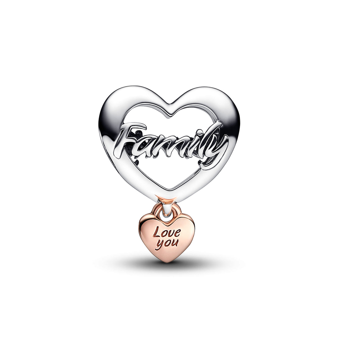 Family Heart Sterling Silver And 14K Rose Gold-Plated Charm