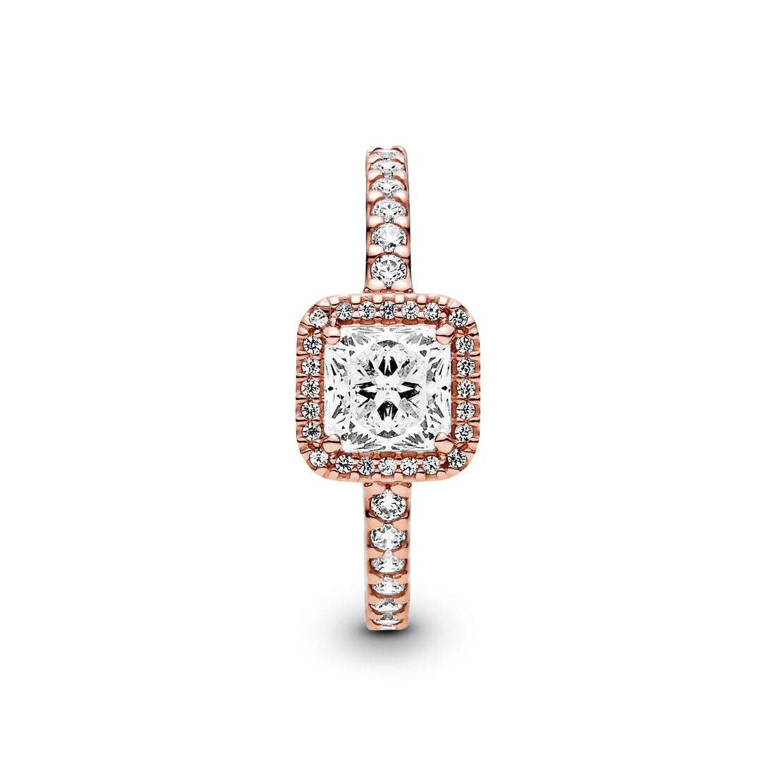 Pandora Logo 14K Rose Gold-Plated Ring With Clear Cubic Zirconia
