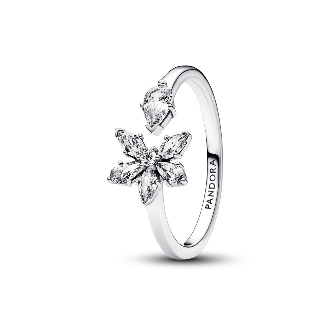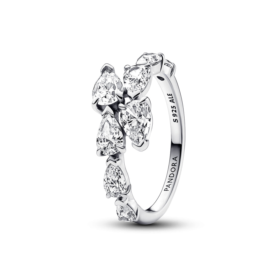 Herbarium Cluster Sterling Silver Open Ring With Clear Cubic Zirconia