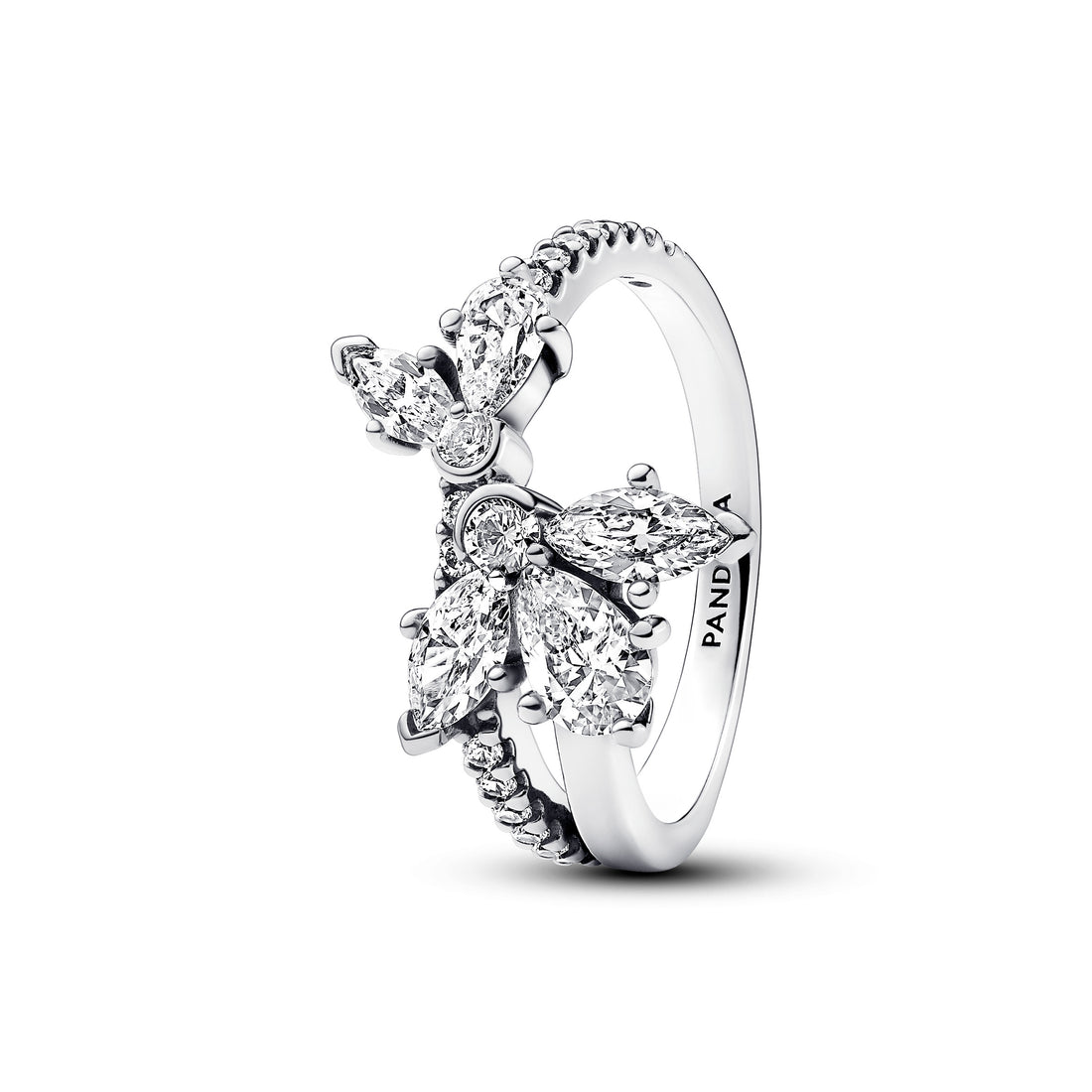 Herbarium Cluster Sterling Silver Ring With Clear Cubic Zirconia