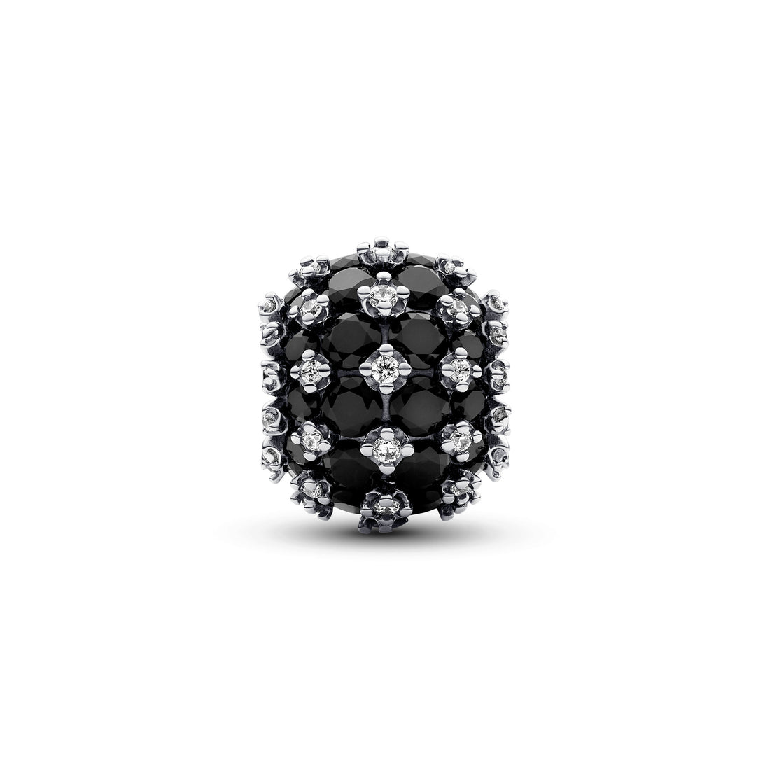 Sterling Silver Charm With Black Crystal And Clear Cubic Zirconia