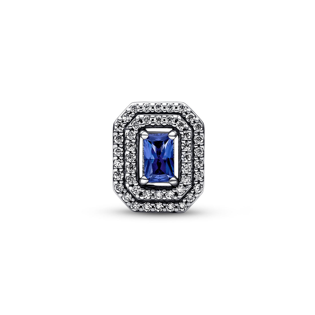 Sterling Silver Charm With Princess Blue Crystal And Clear Cubic Zirconia