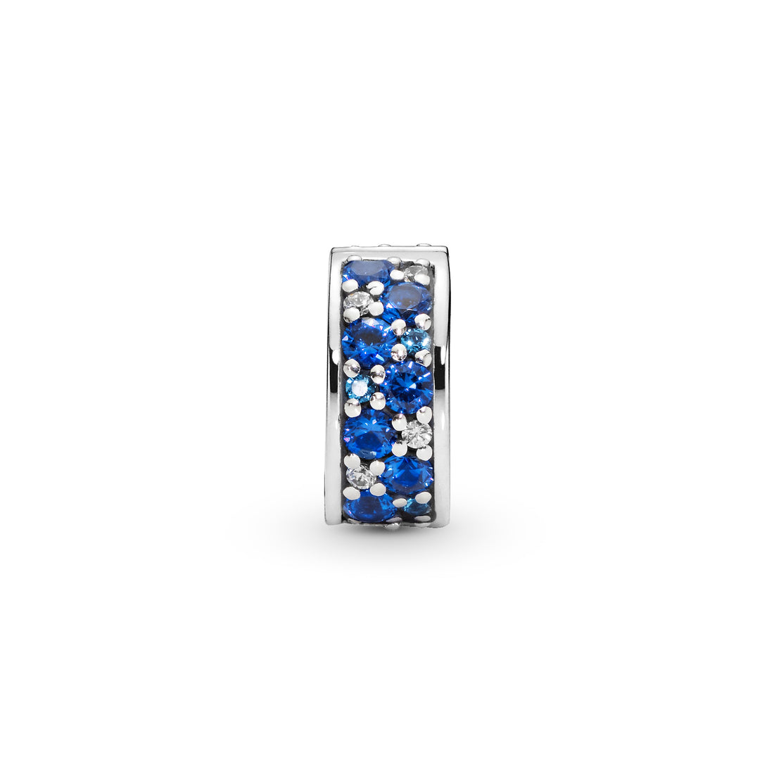 Silver Clip With Swiss Blue Crystal, Clear Cubic Zirconia, Royal Blue Crystal And Silicone Grip