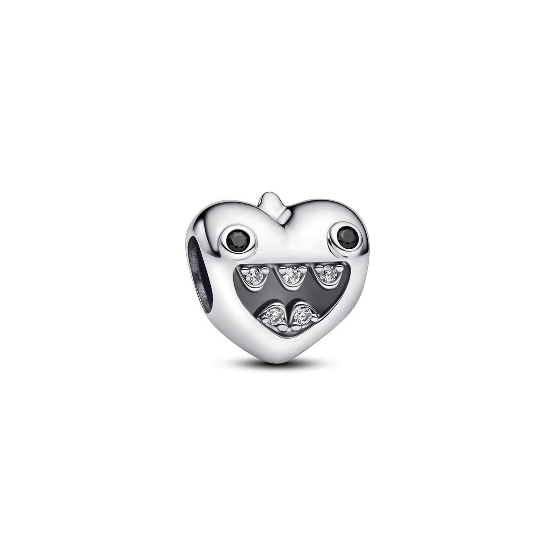 Mum Of Monsters Heart Sterling Silver Charm With Black Crystal And Clear Cubic Zirconia