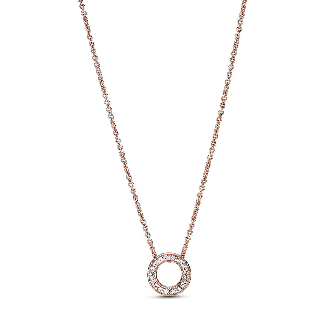 Pandora Logo Intertwined Circle Sterling Silver And 14K Rose Gold-Plated Collier With Clear Cubic Zirconia