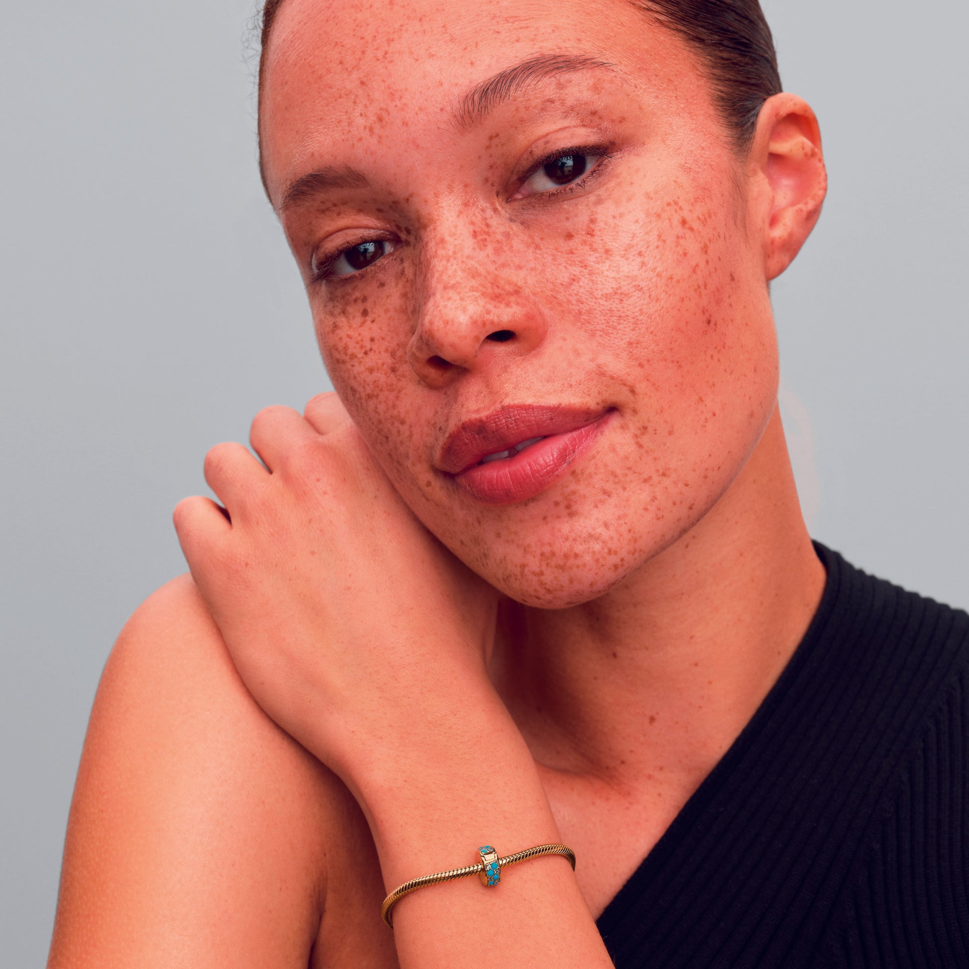 14K Gold-Plated Clip With Icy Blue And Capri Blue Crystal And Silicone Grip