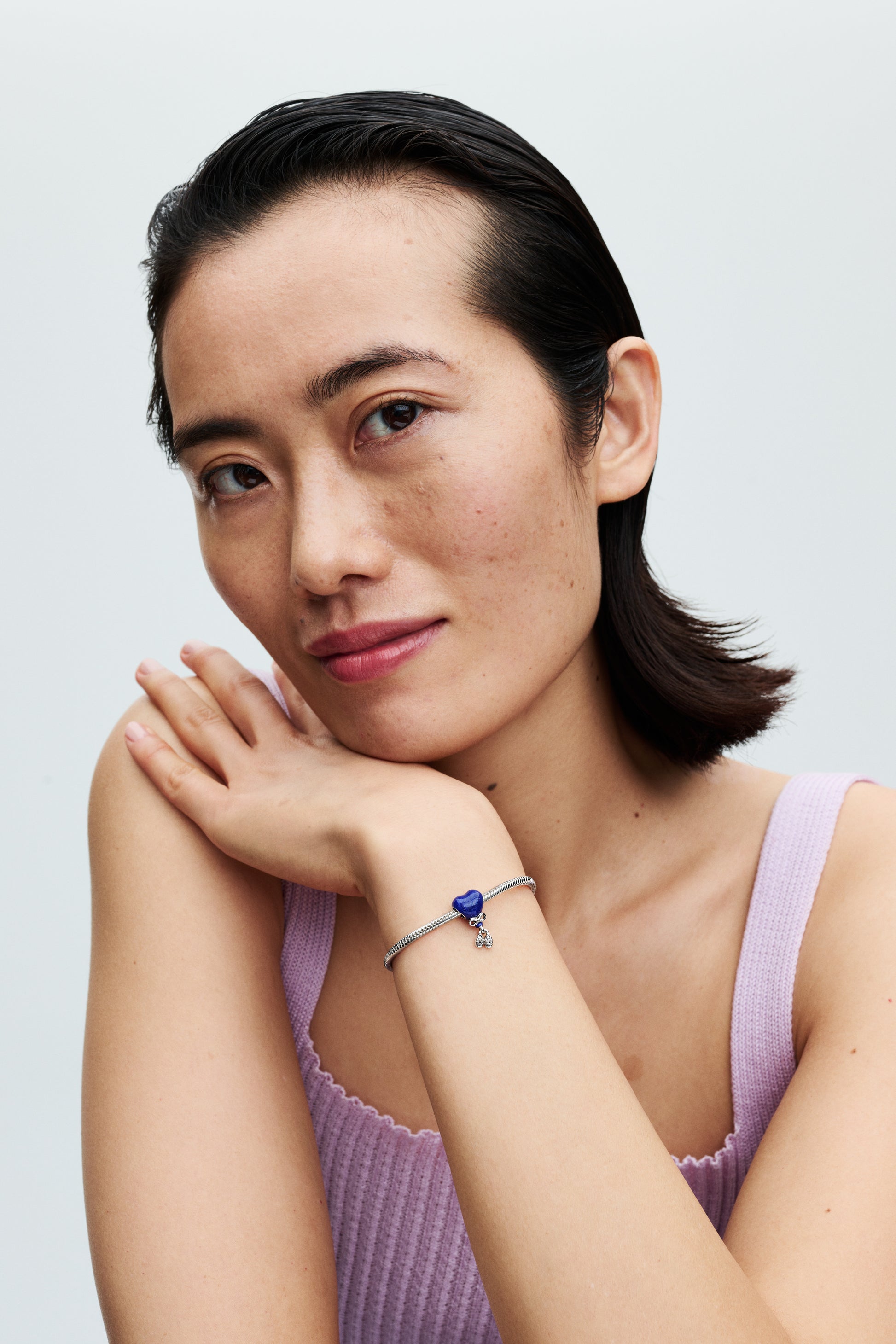 Baby Boy Balloon Sterling Silver Charm With Color Changing Purple To Light Blue And Black Enamel