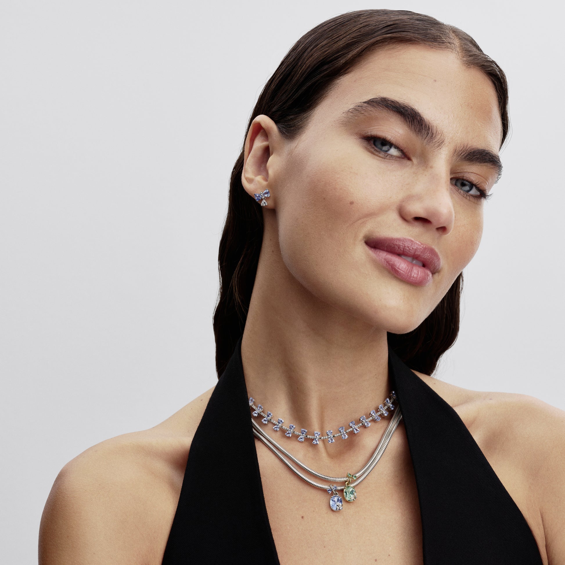 Bee And Butterfly Sterling Silver And 14K Gold-Plated Splittable Dangle With Clear Cubic Zirconia, Green And Blue Crystal