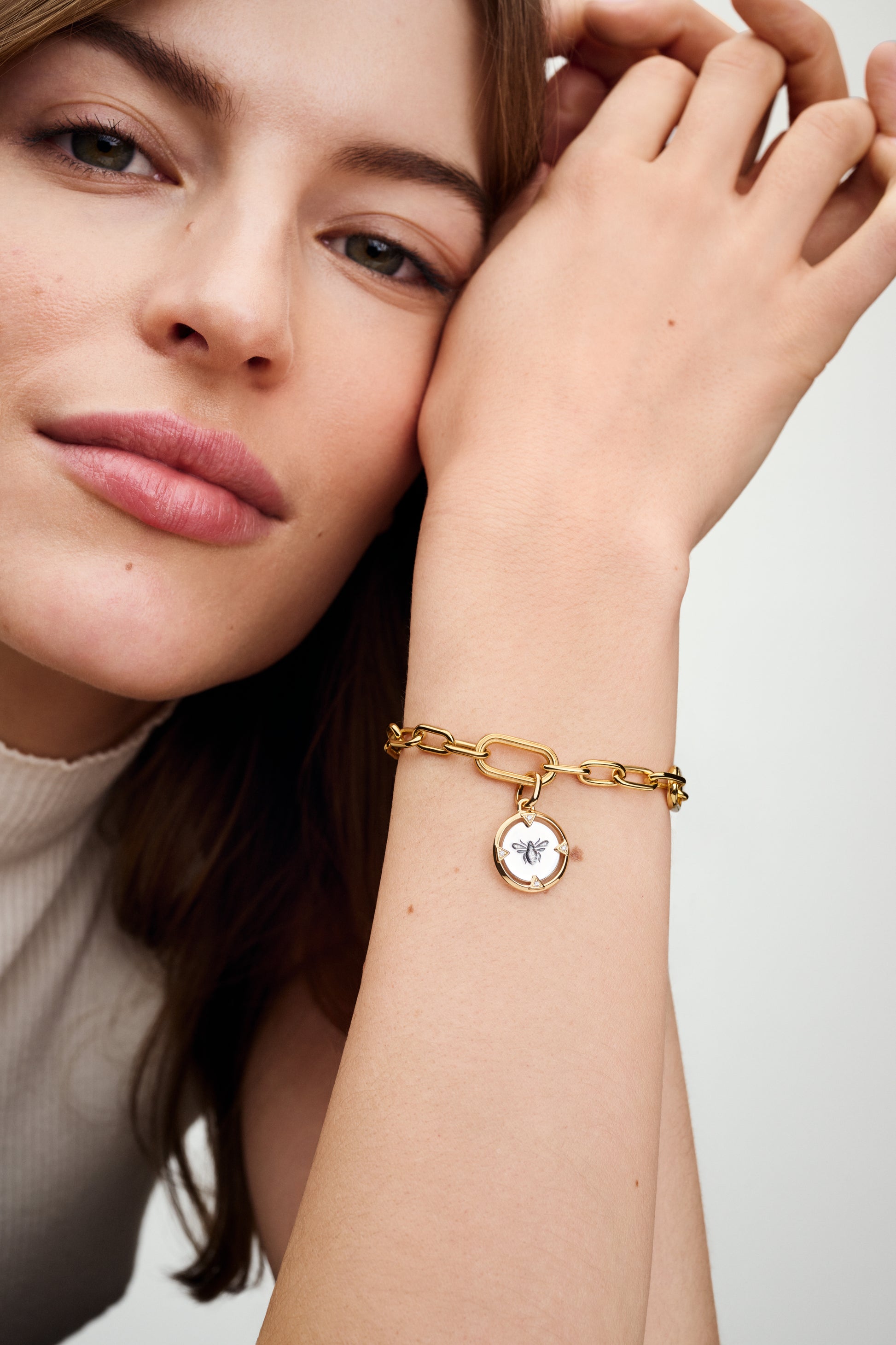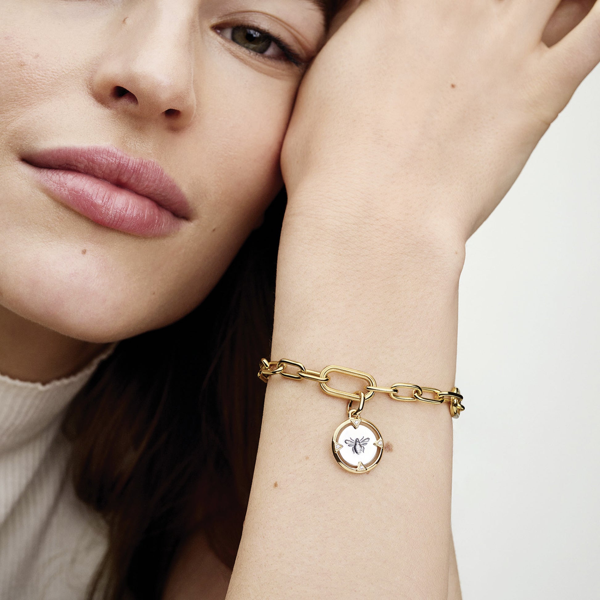 Bee Sterling Silver And 14K Gold-Plated Medallion With Clear Cubic Zirconia