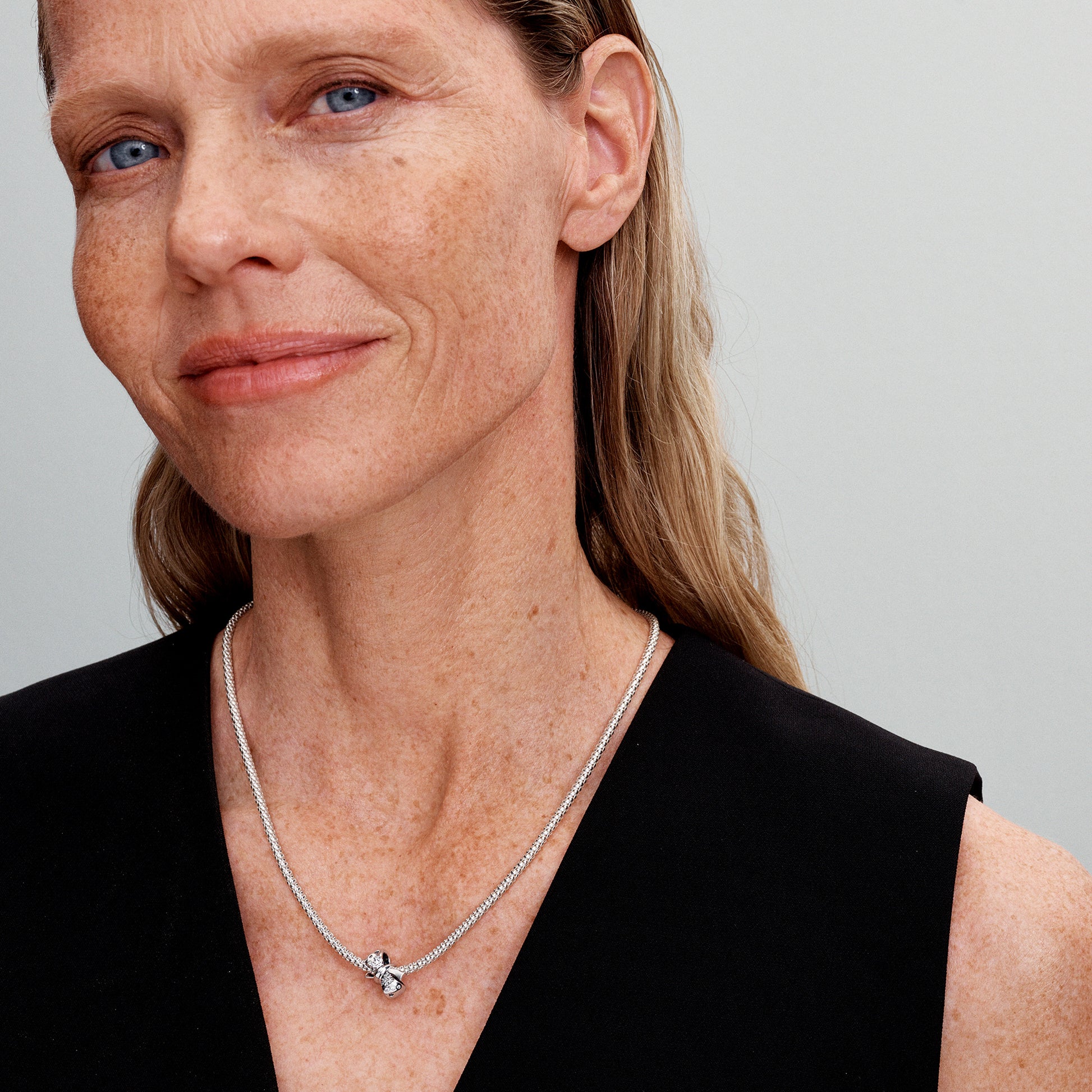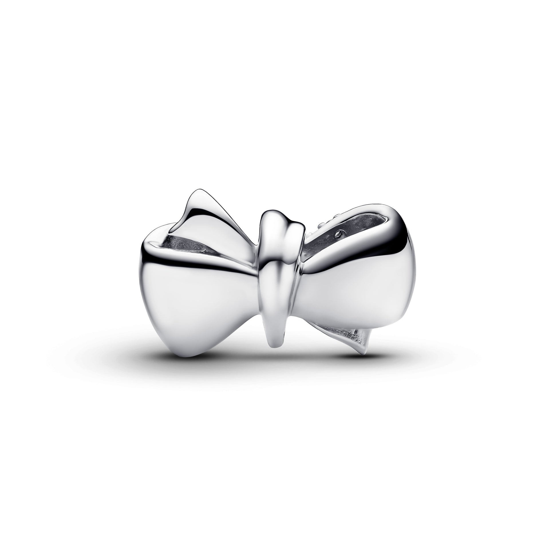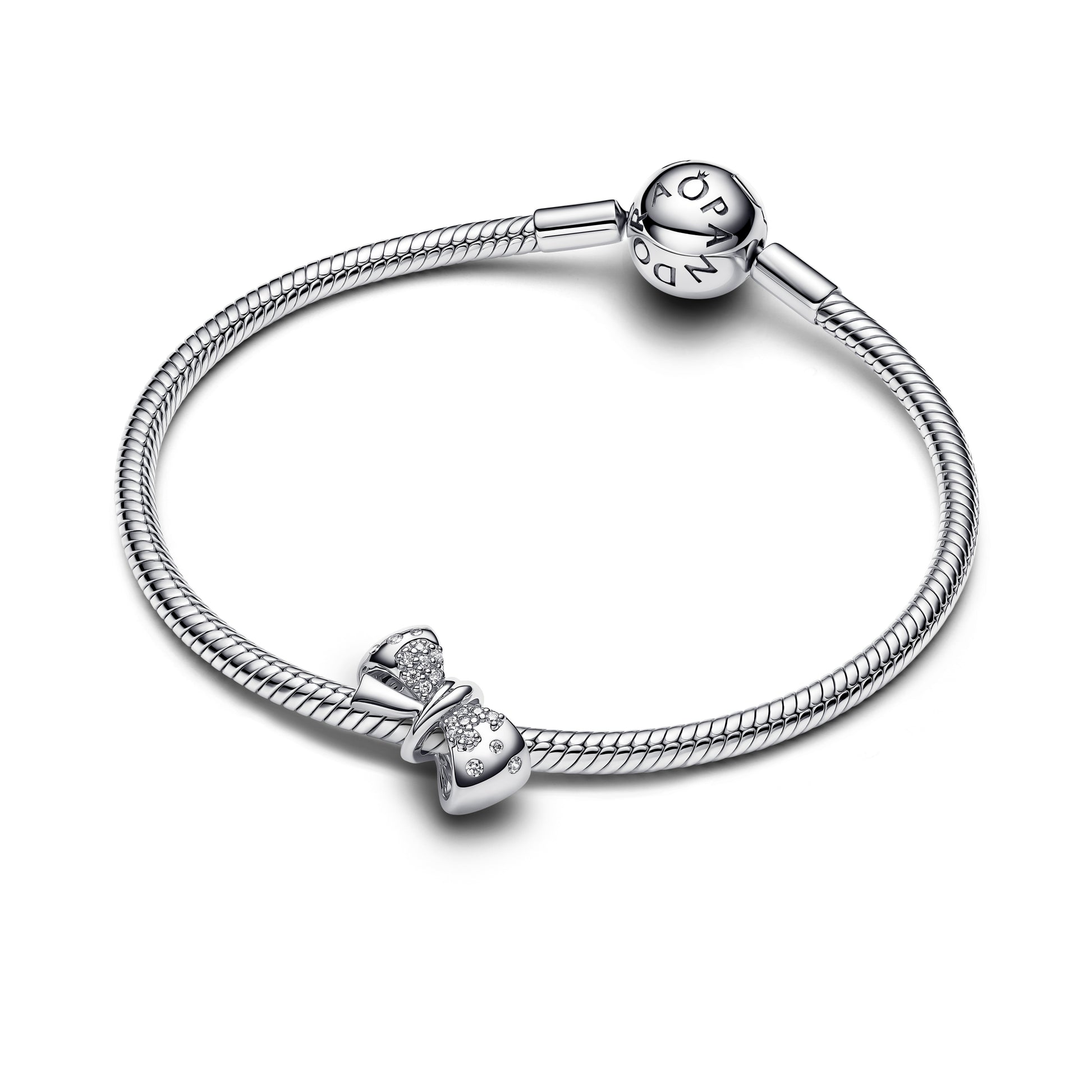 Bow Sterling Silver Charm With Clear Cubic Zirconia