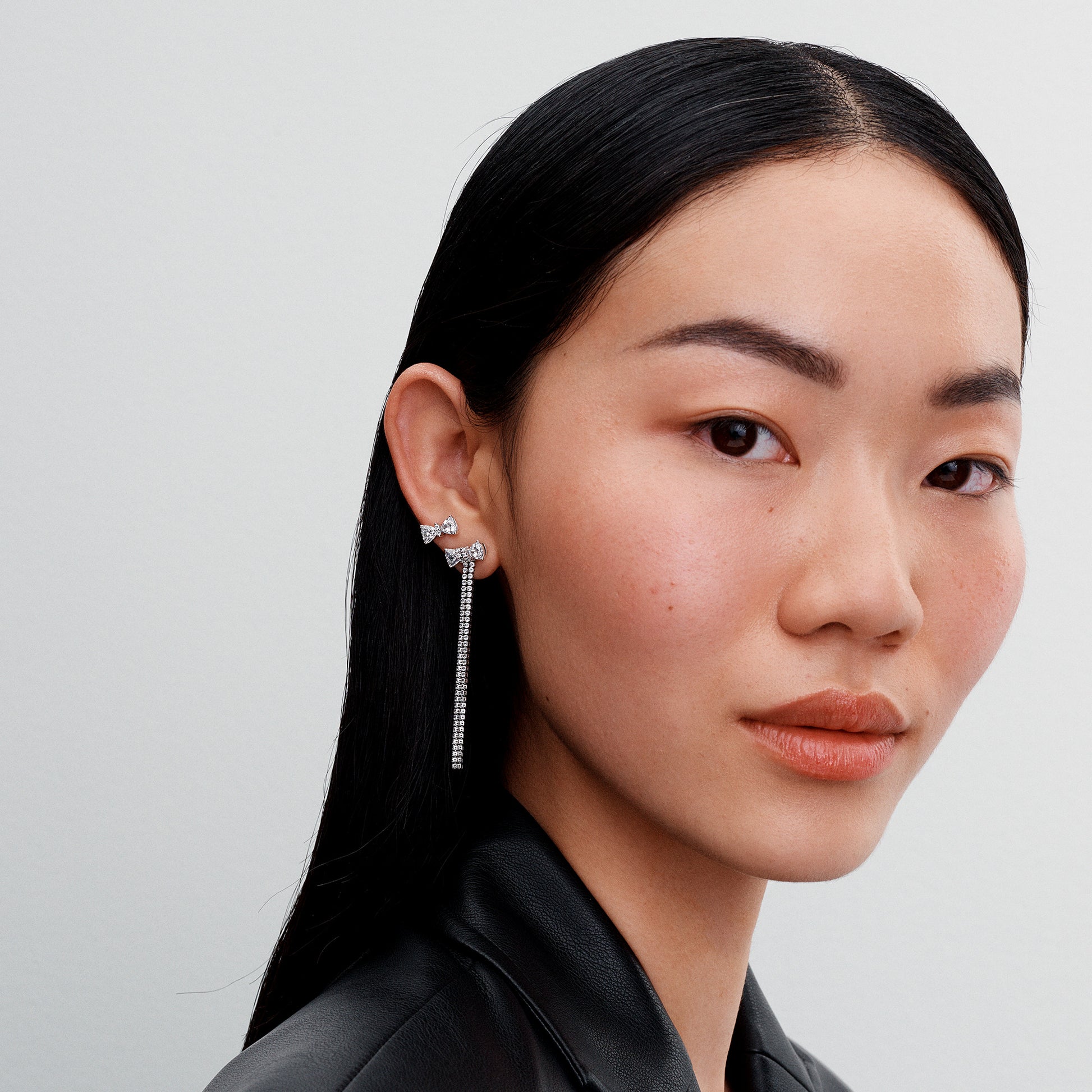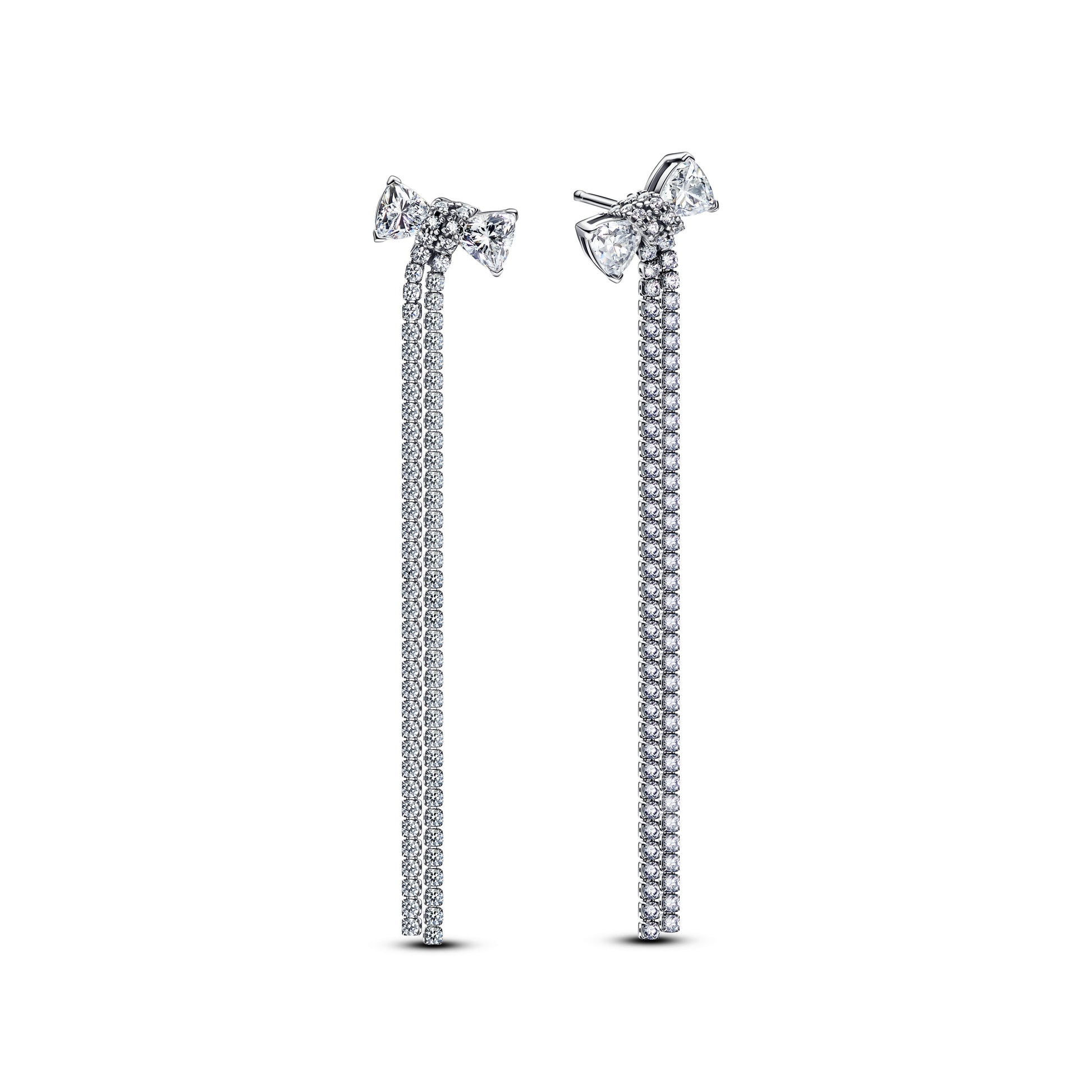 Bow Sterling Silver Drop Earrings With Clear Cubic Zirconia