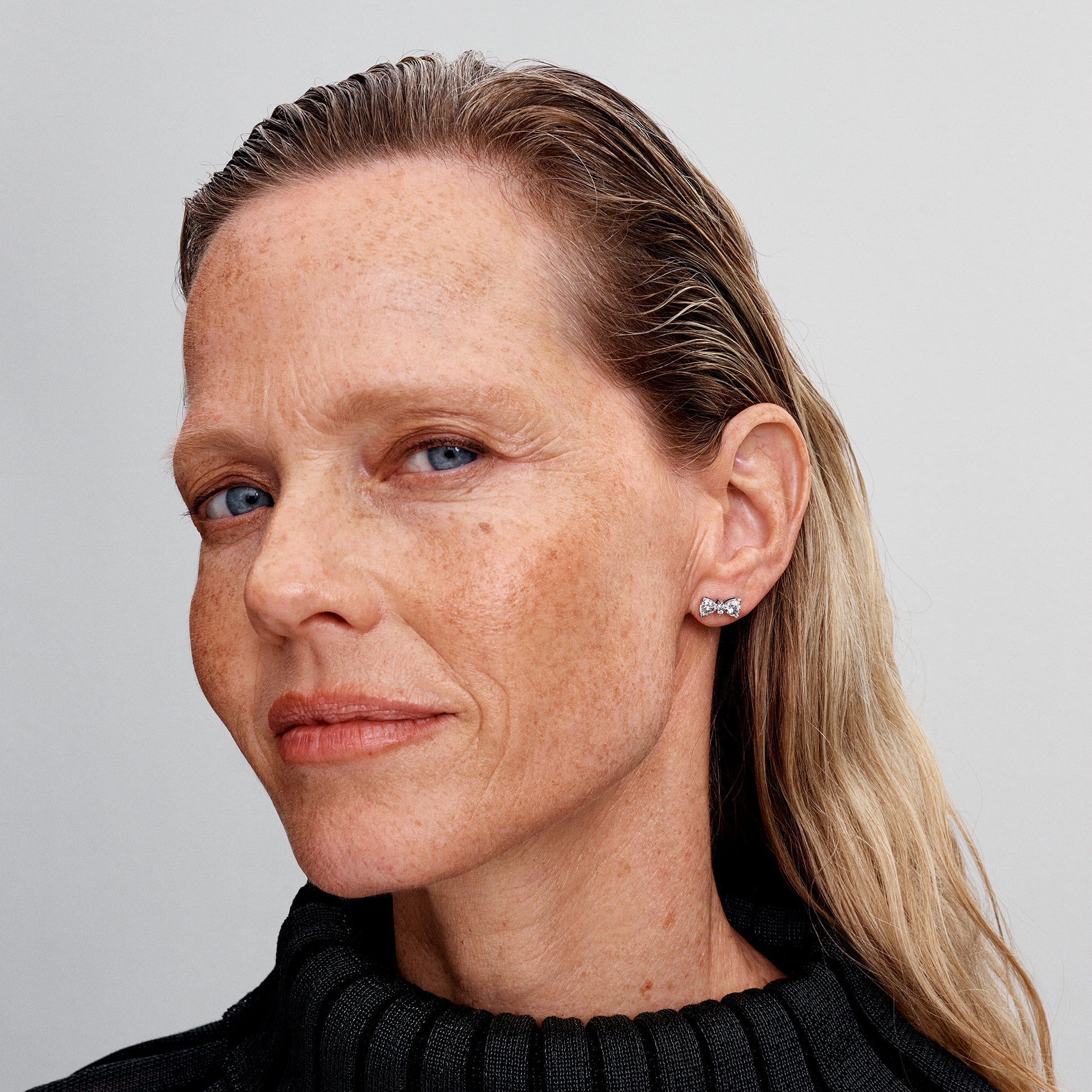 Bow Sterling Silver Stud Earrings With Clear Cubic Zirconia