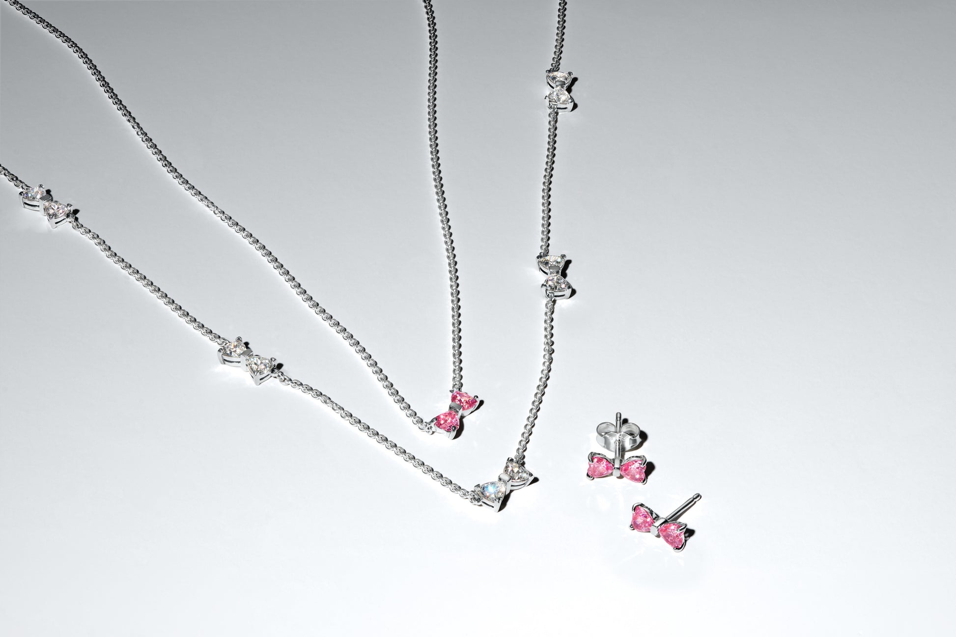 Bow Sterling Silver Stud Earrings With Fancy Pink And Clear Cubic Zirconia