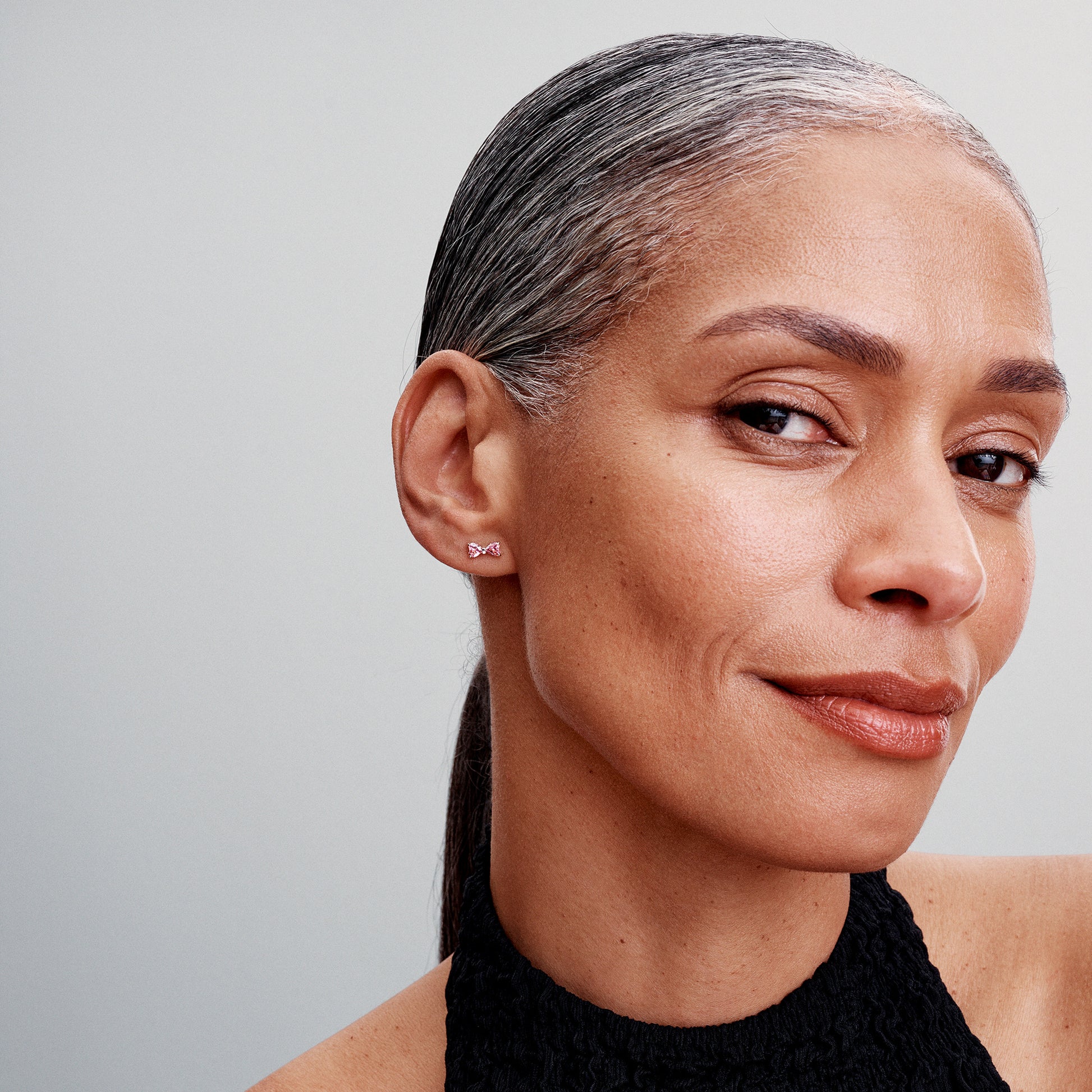 Bow Sterling Silver Stud Earrings With Fancy Pink Cubic Zirconia