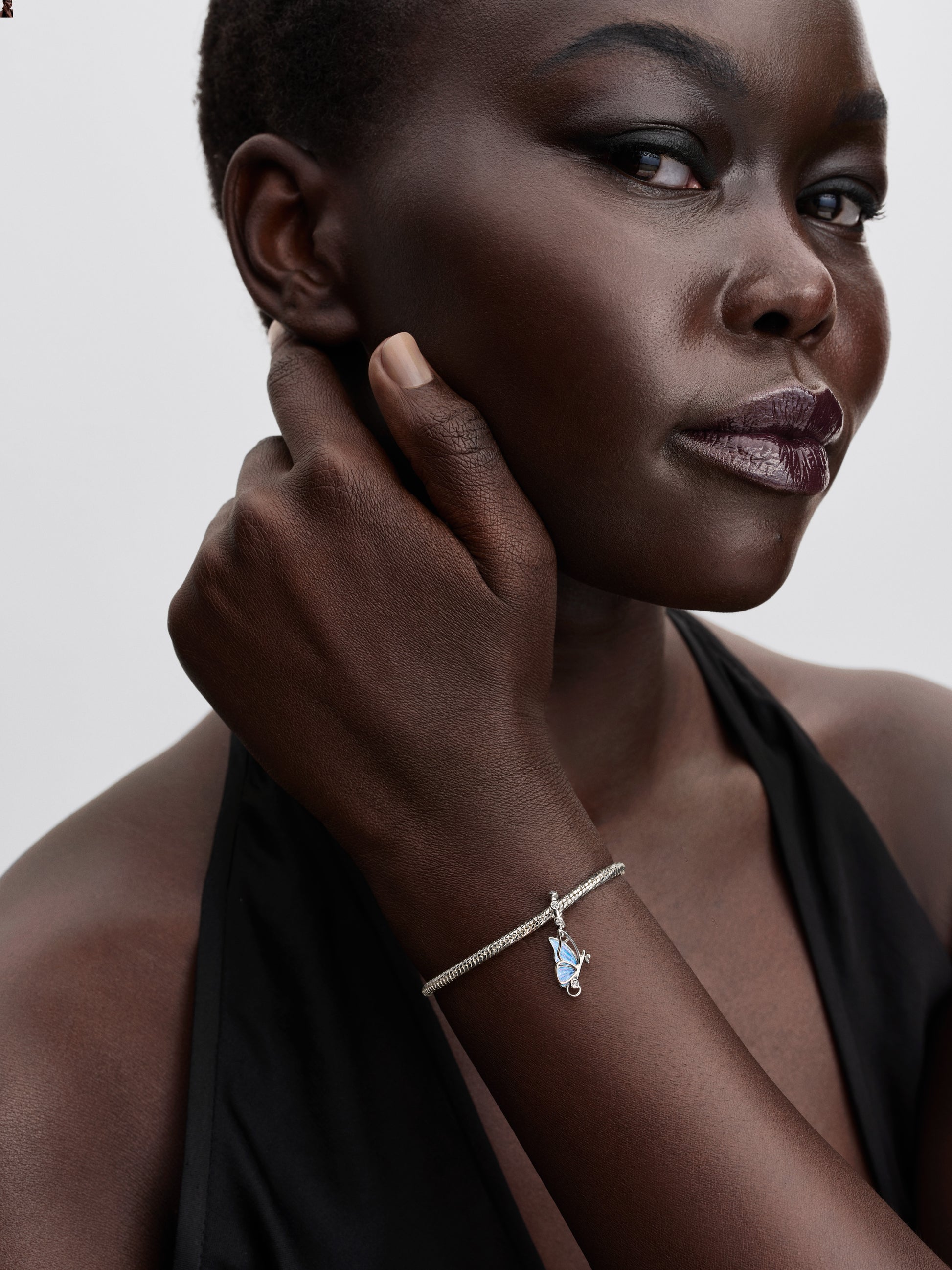 Butterfly Sterling Silver Dangle With Clear Cubic Zirconia And Shimmering Enamel