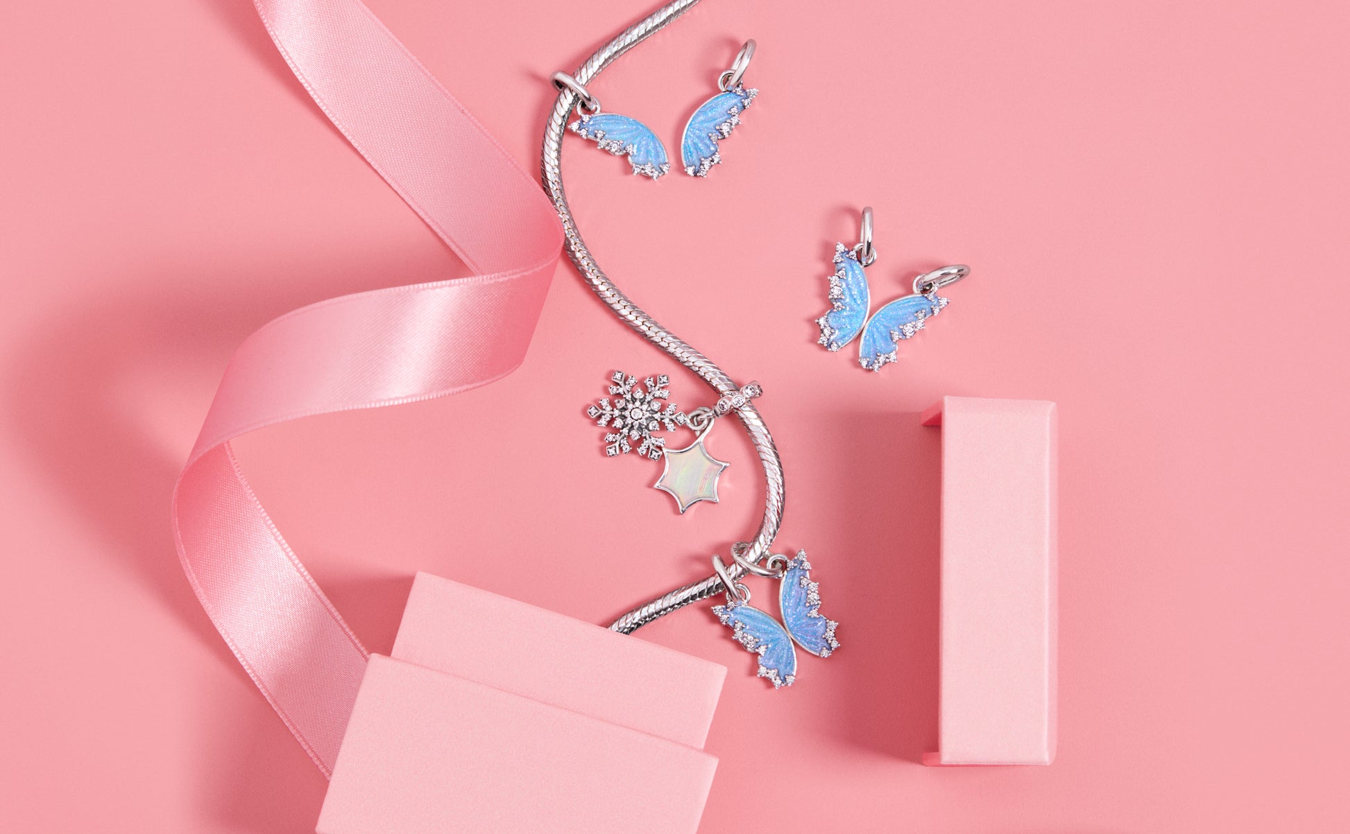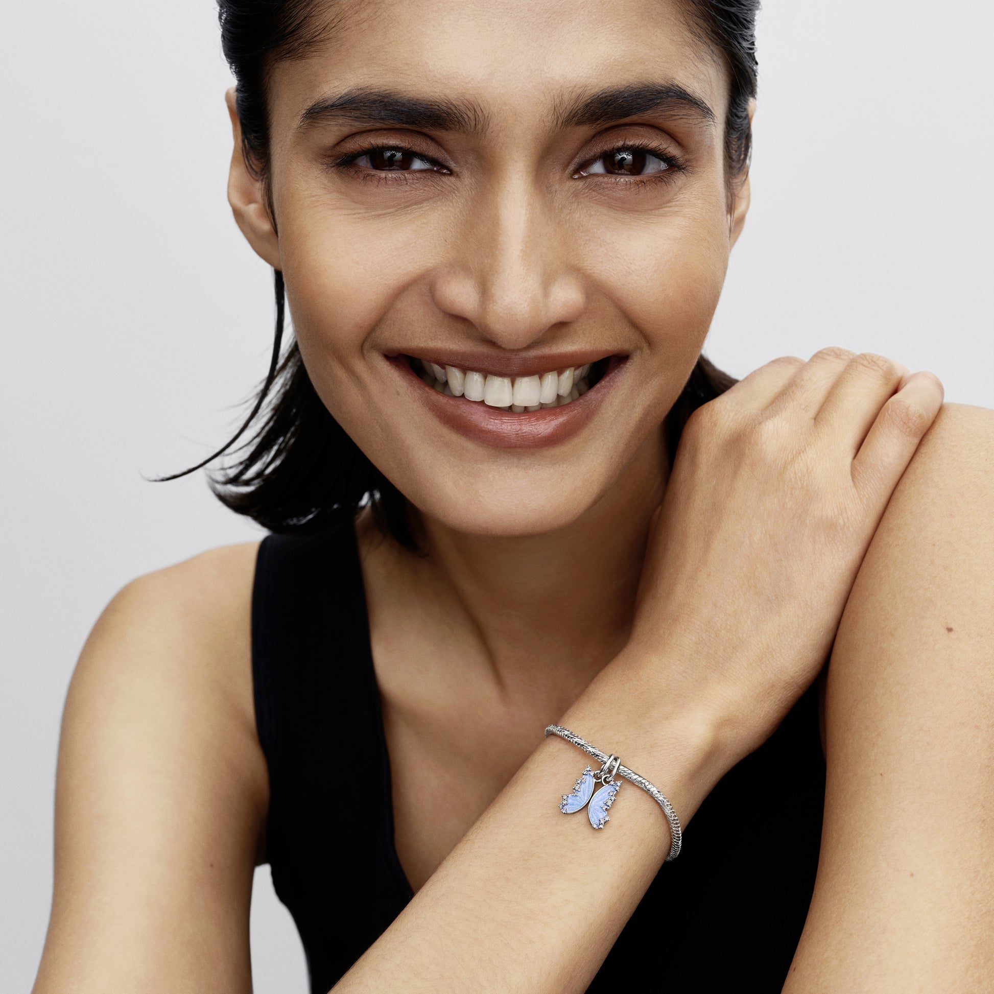 Butterfly Sterling Silver Splittable Dangle With Clear Cubic Zirconia And Shimmering Enamel