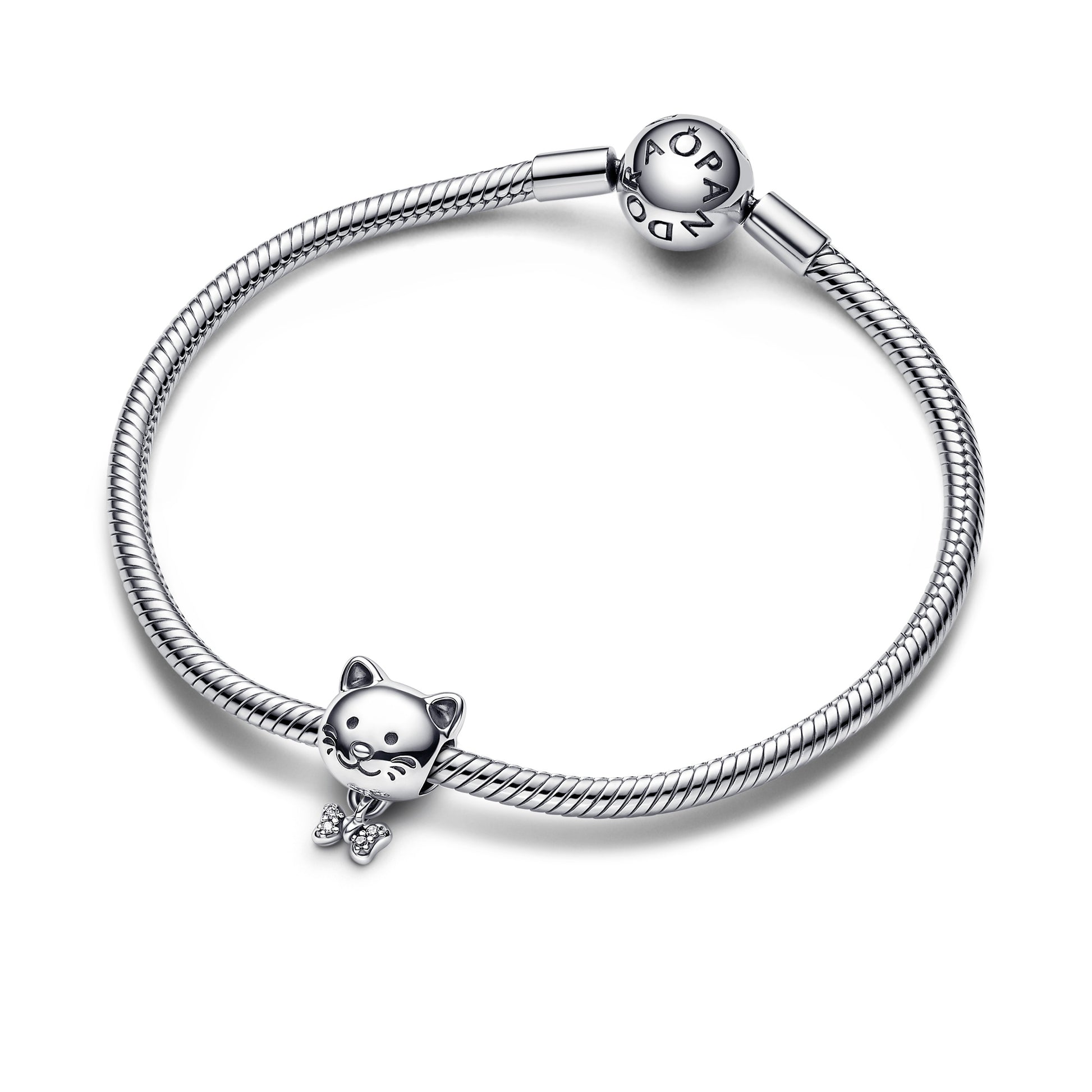 Cat Sterling Silver Charm With Clear Cubic Zirconia