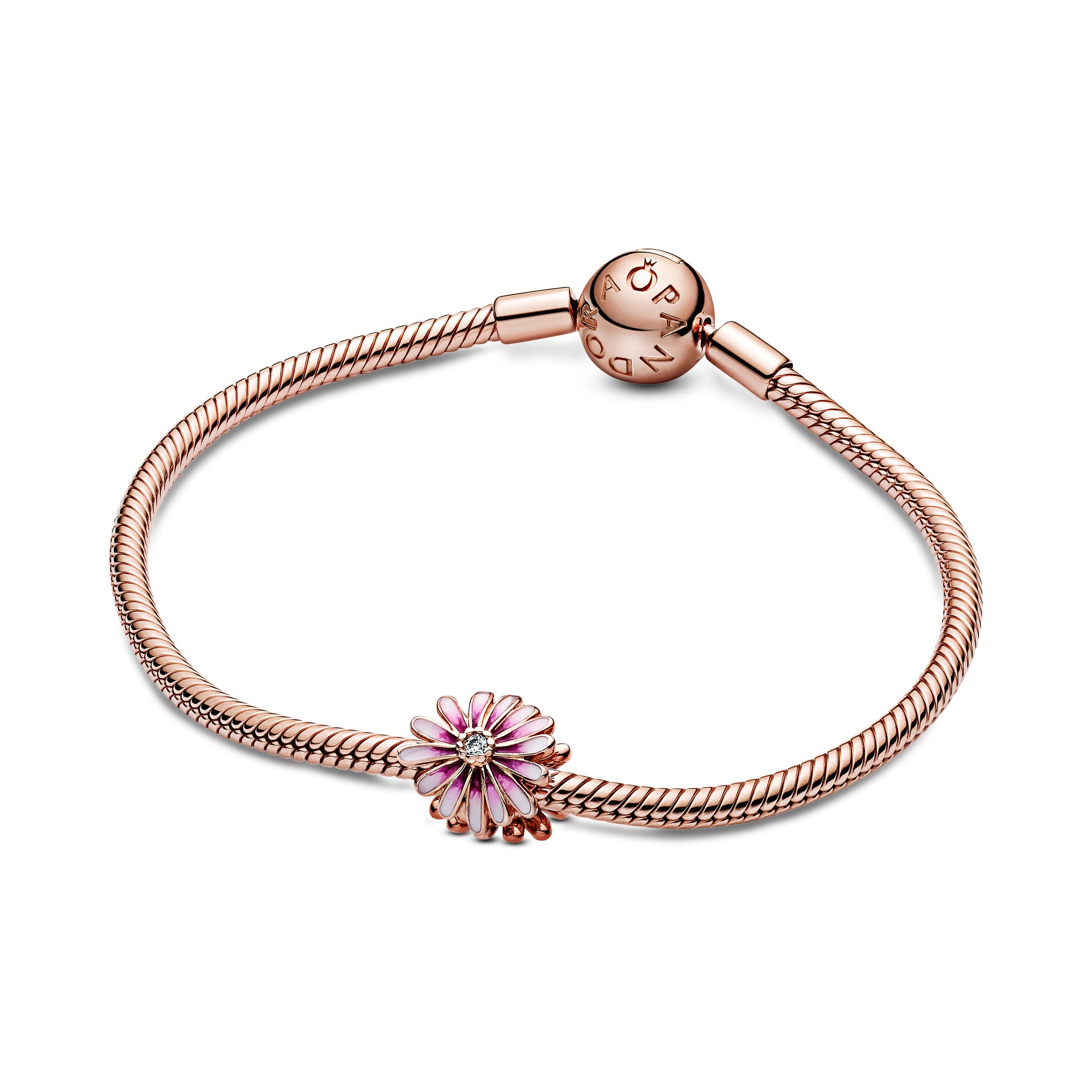 Daisy 14K Rose Gold-Plated Charm With Clear Cubic Zirconia And Shaded Pink Enamel