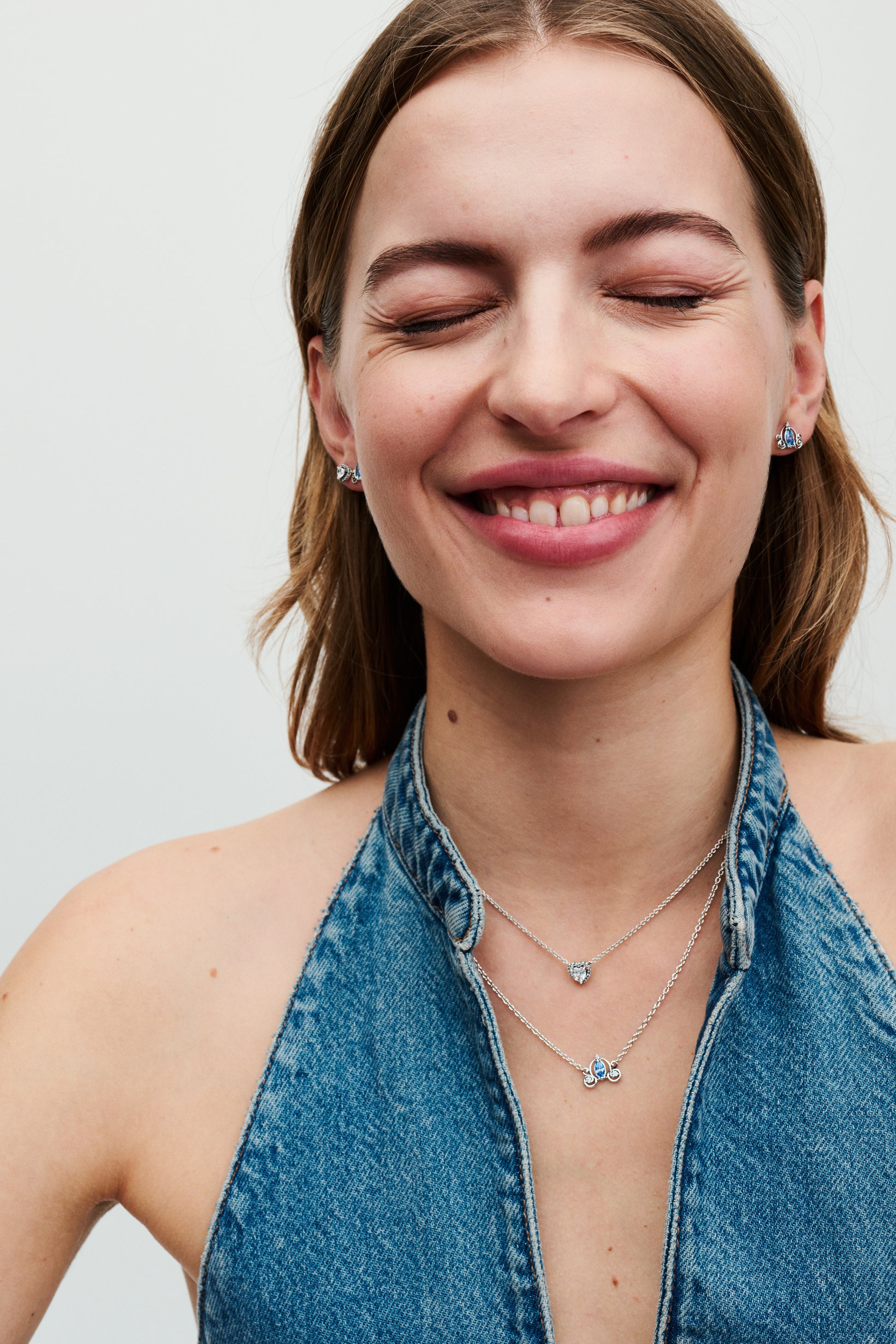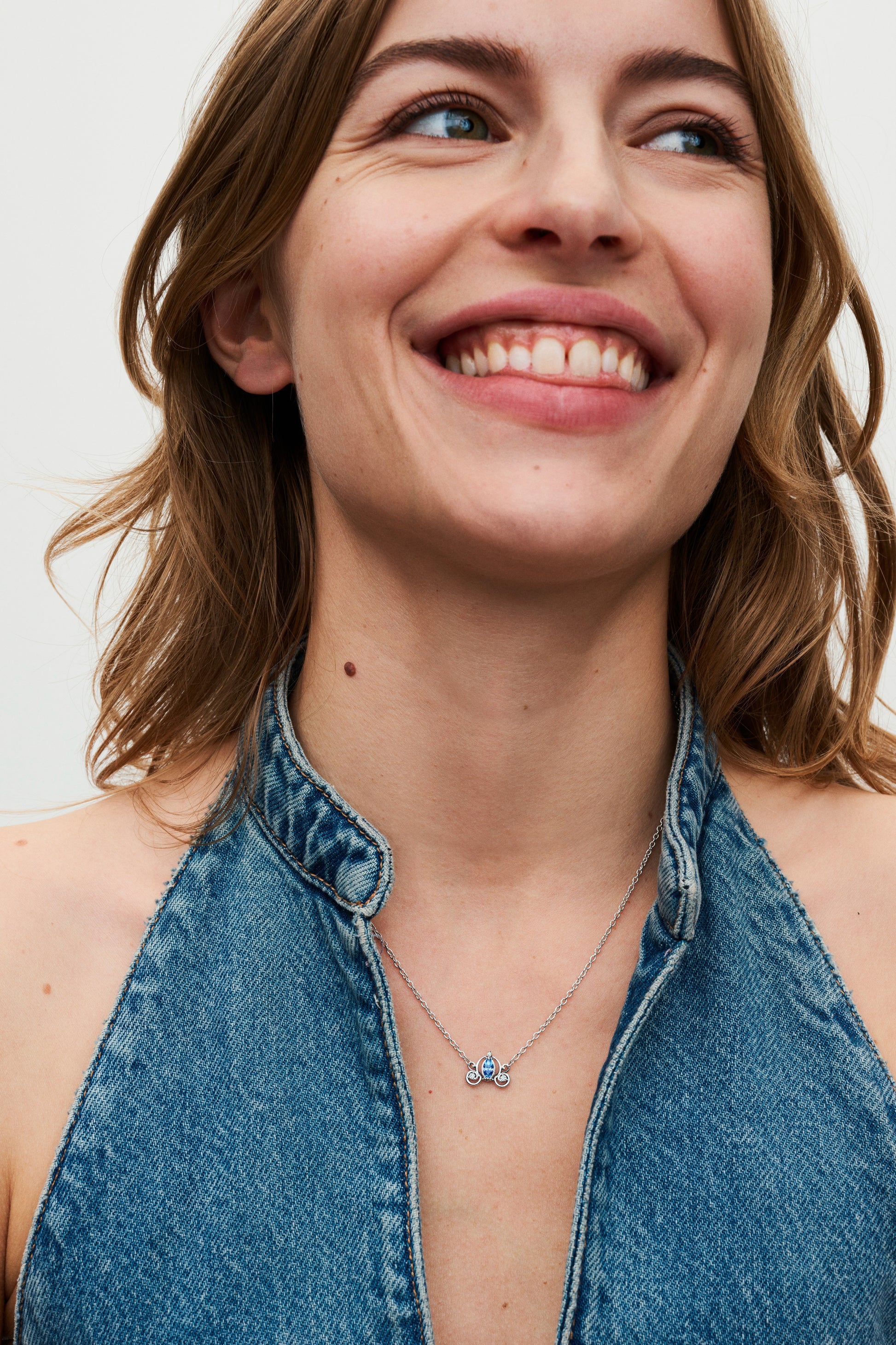 Disney Cinderella Sterling Silver Collier With Fancy Light Blue And Clear Cubic Zirconia