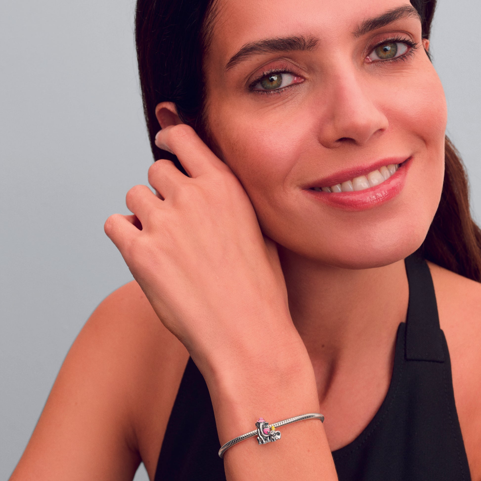 Disney Dumbo And Mum Sterling Silver Charm With Pink And Yellow Enamel