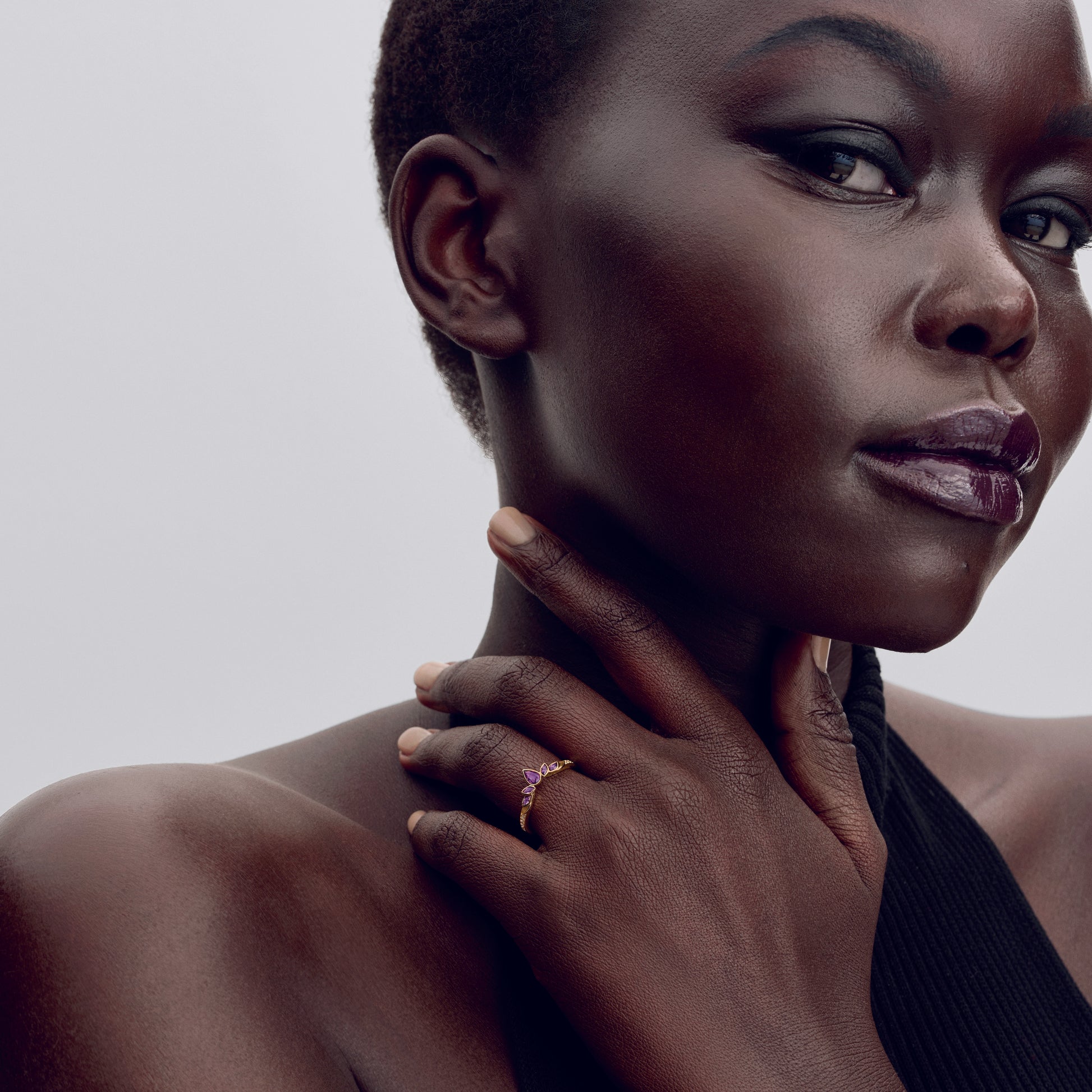 Disney Frozen 14K Gold-Plated Ring With Violet Purple Crystal And Clear Cubic Zirconia