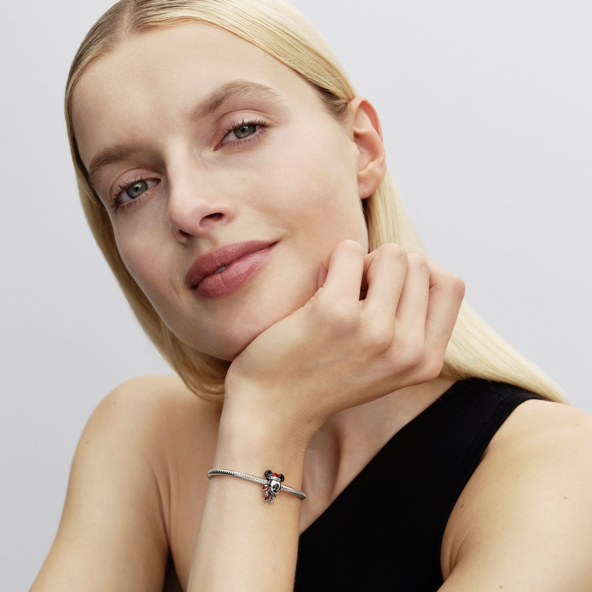 Disney Mickey Mouse Sterling Silver Charm With Glittery Black And Red Enamel