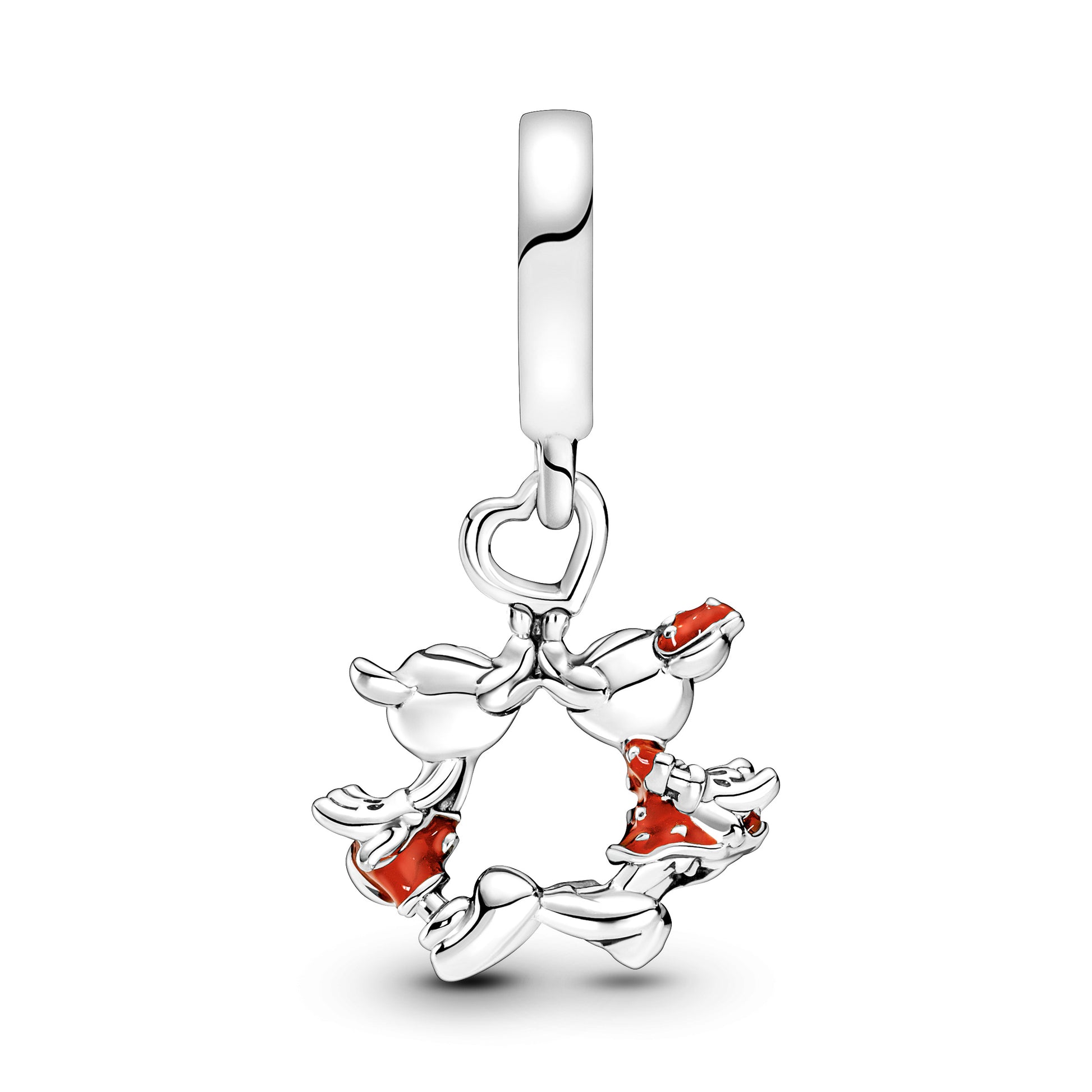 Disney Minnie And Mickey Mouse Kissing Sterling Silver Dangle With Red Enamel
