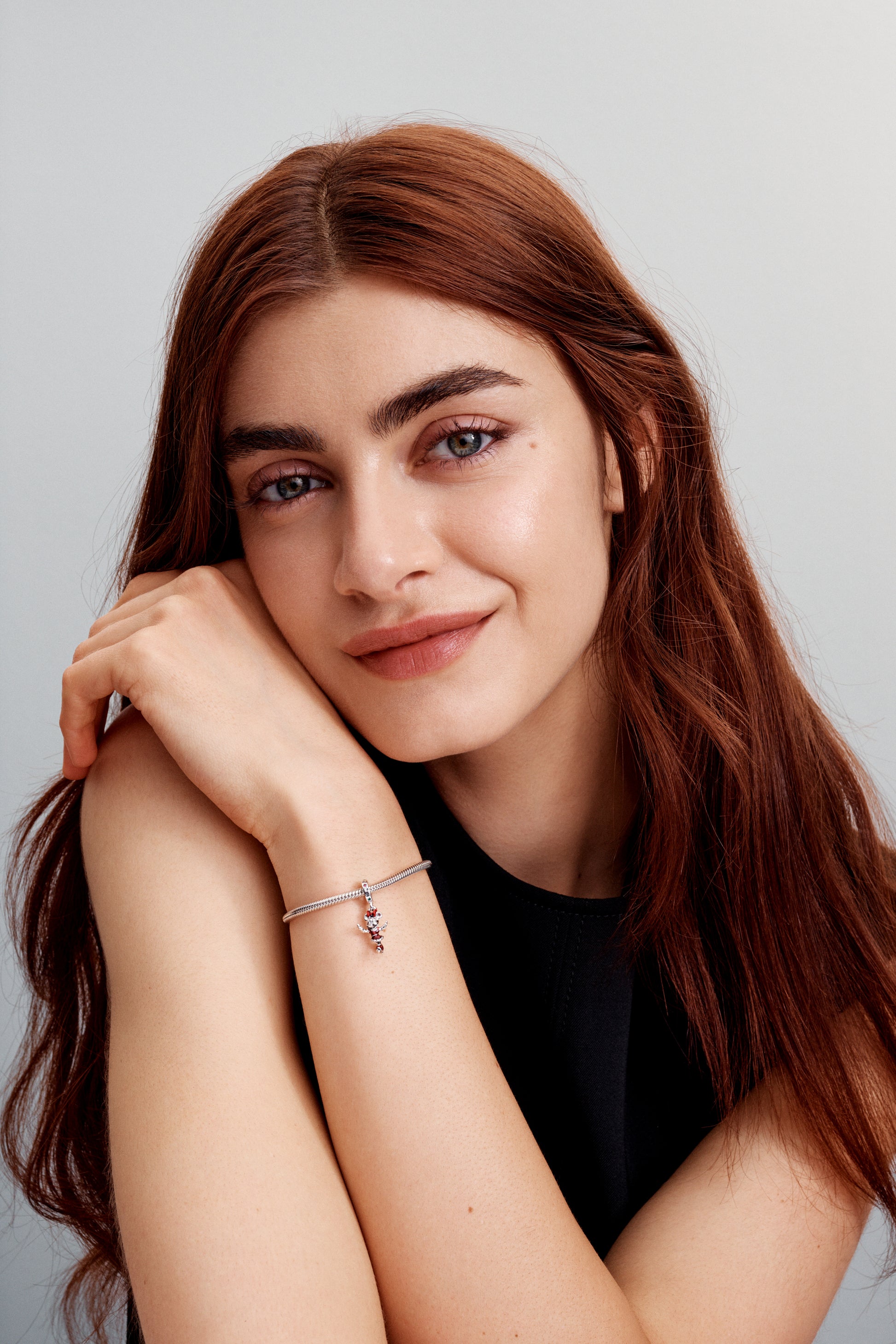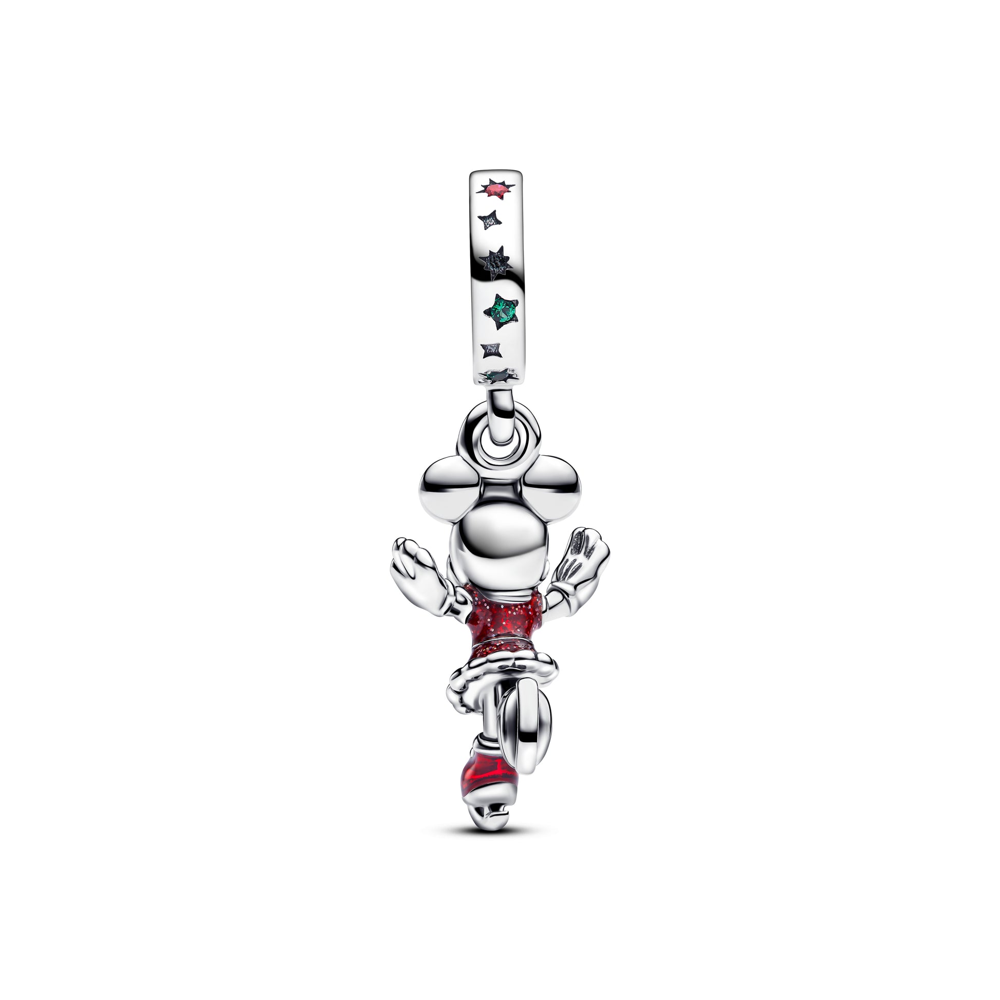 Disney Minnie Mouse Ice Skating Sterling Silver Dangle With Red Cubic Zirconia, Lake Green Crystal And Holo Glittery Red Enamel