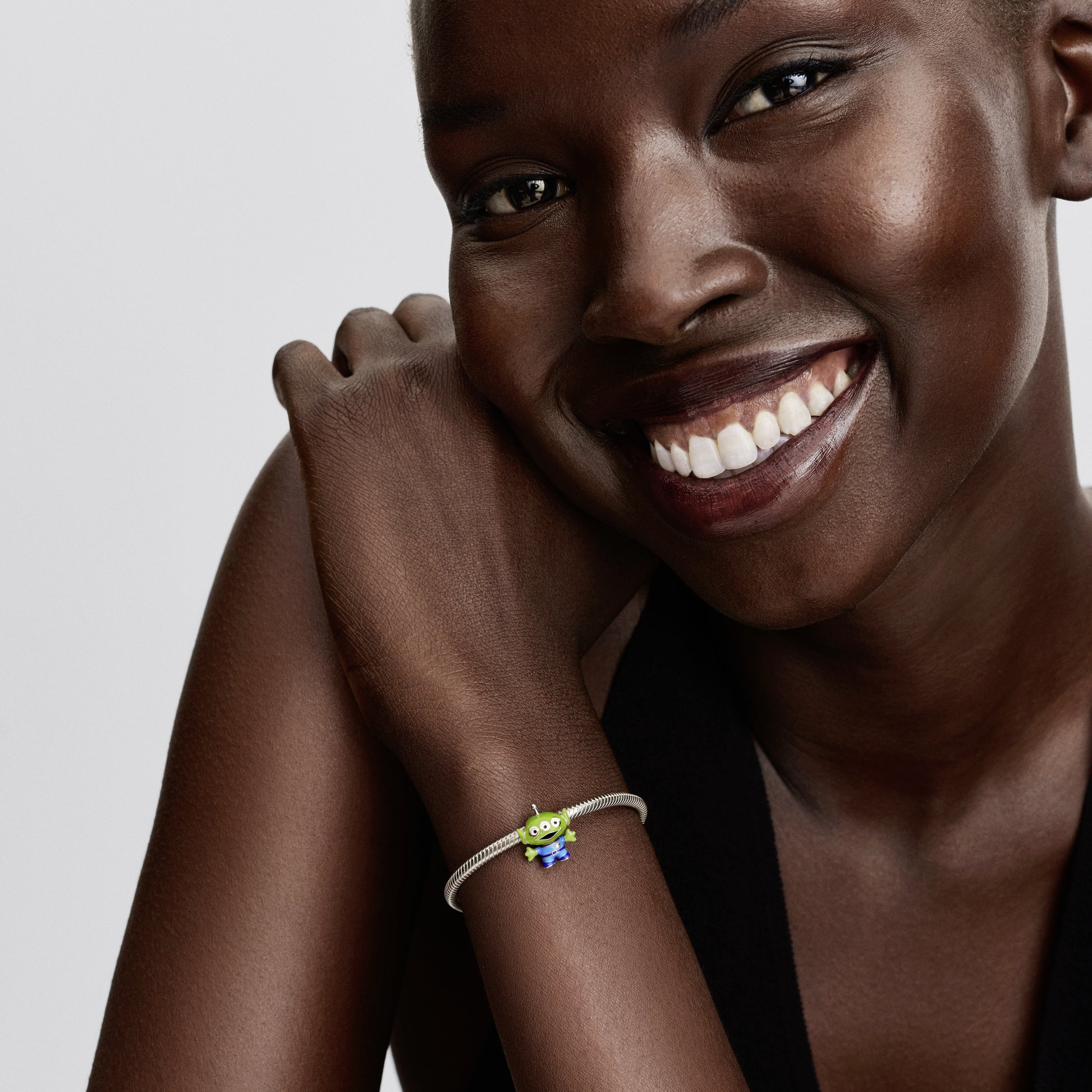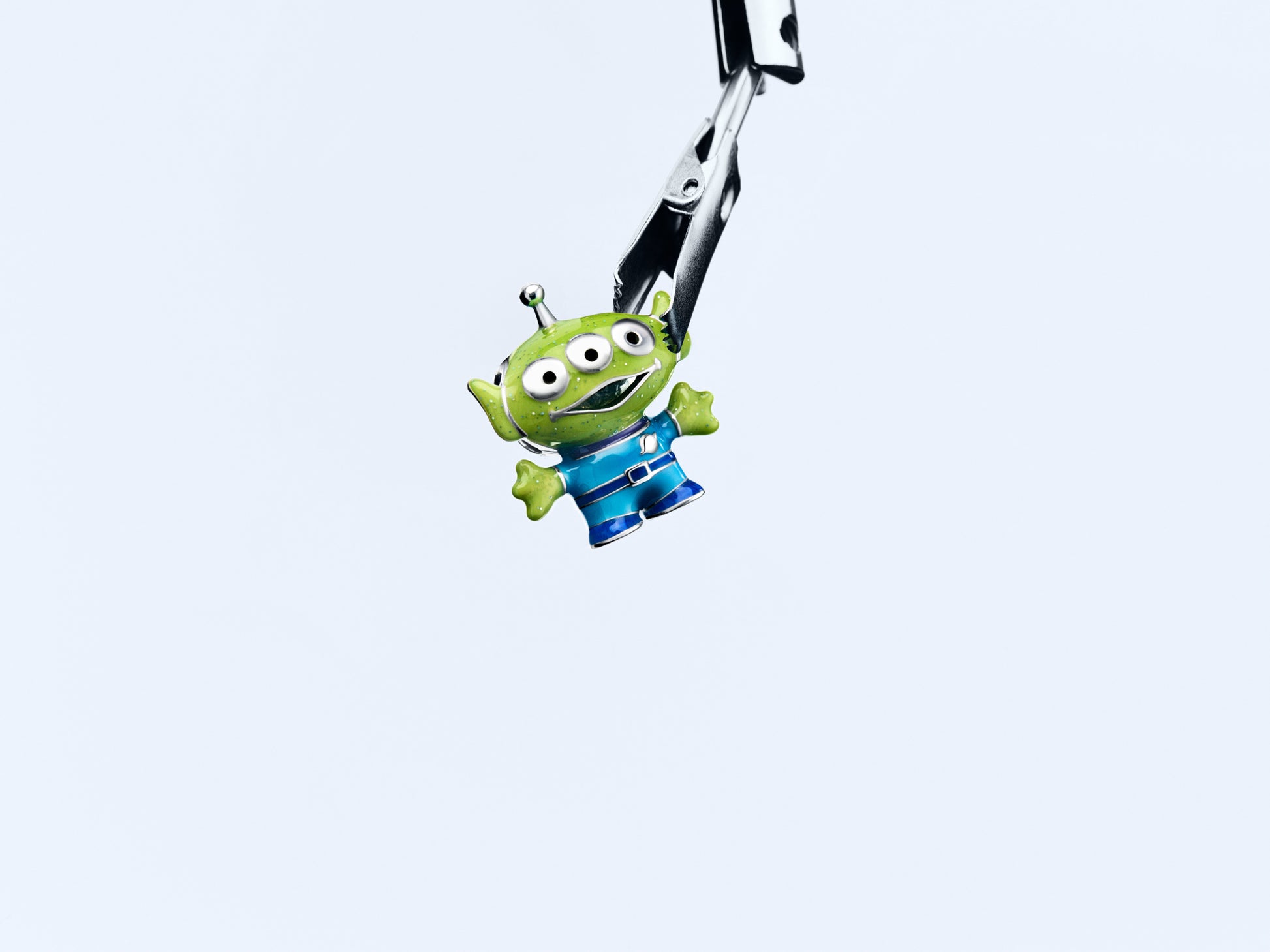 Disney Pixar Little Green Men Sterling Silver Charm With Black, Purple, Blue And Glittery Green Enamel