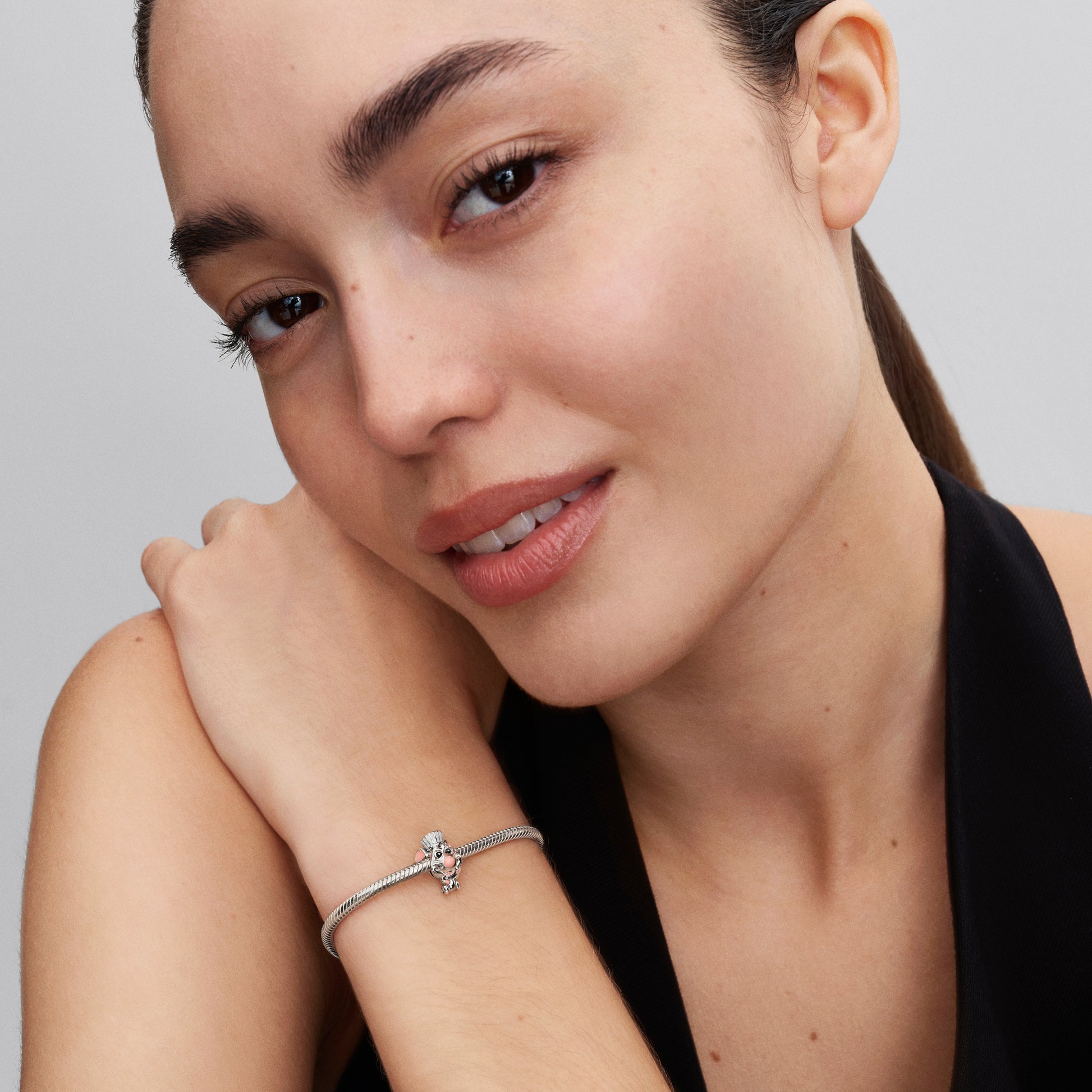 Disney Pixar Remy Sterling Silver Charm With Black, Pink And Glittery White Enamel