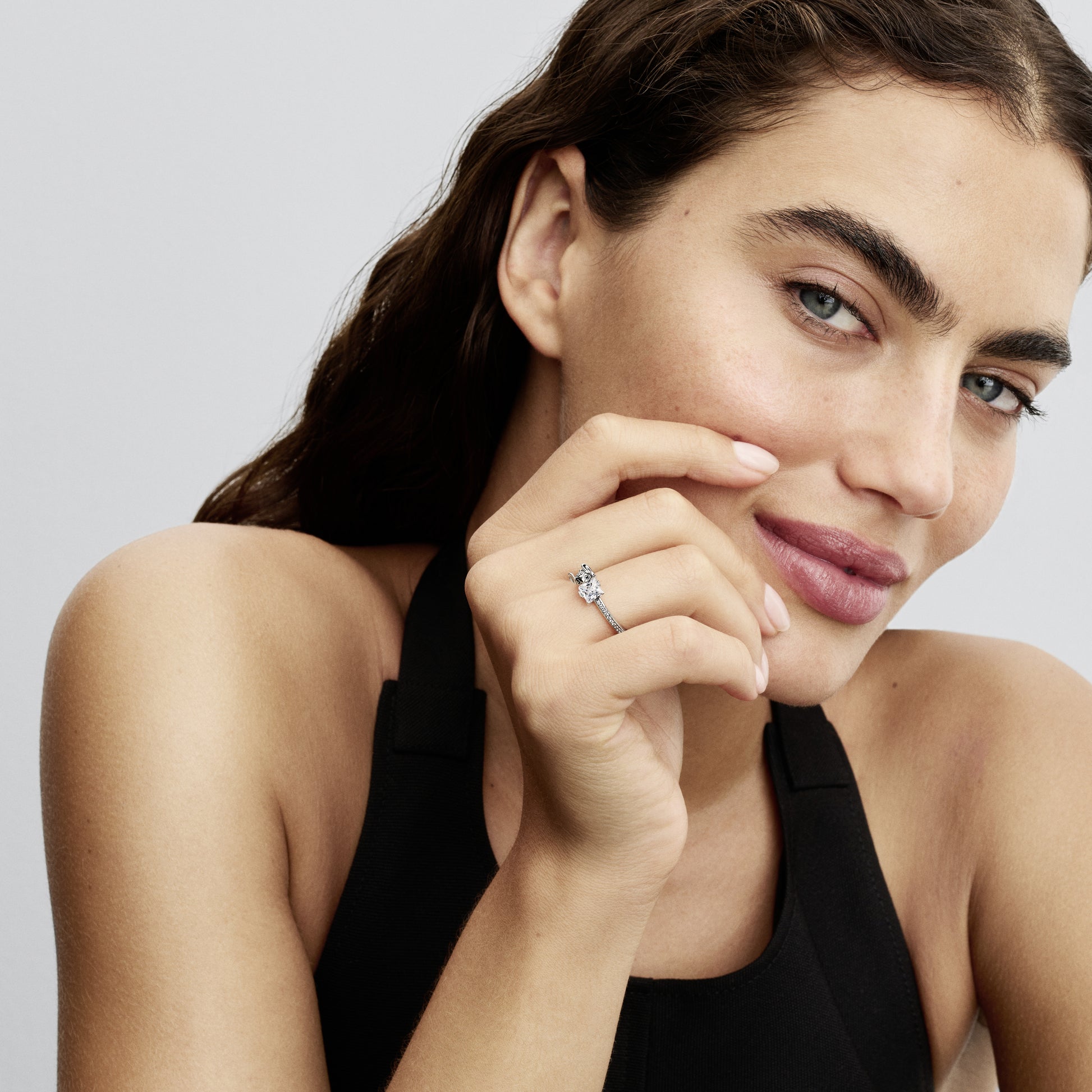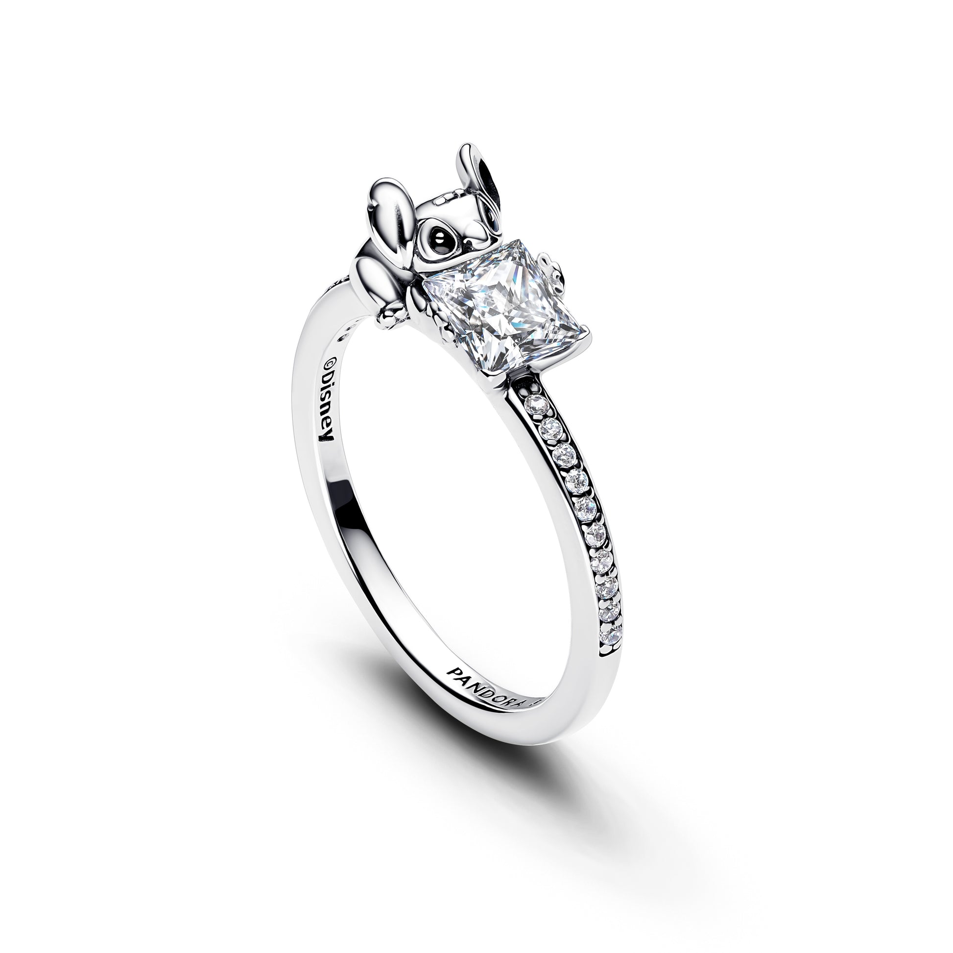 Disney Stitch Sterling Silver Ring With Clear Cubic Zirconia And Black Enamel
