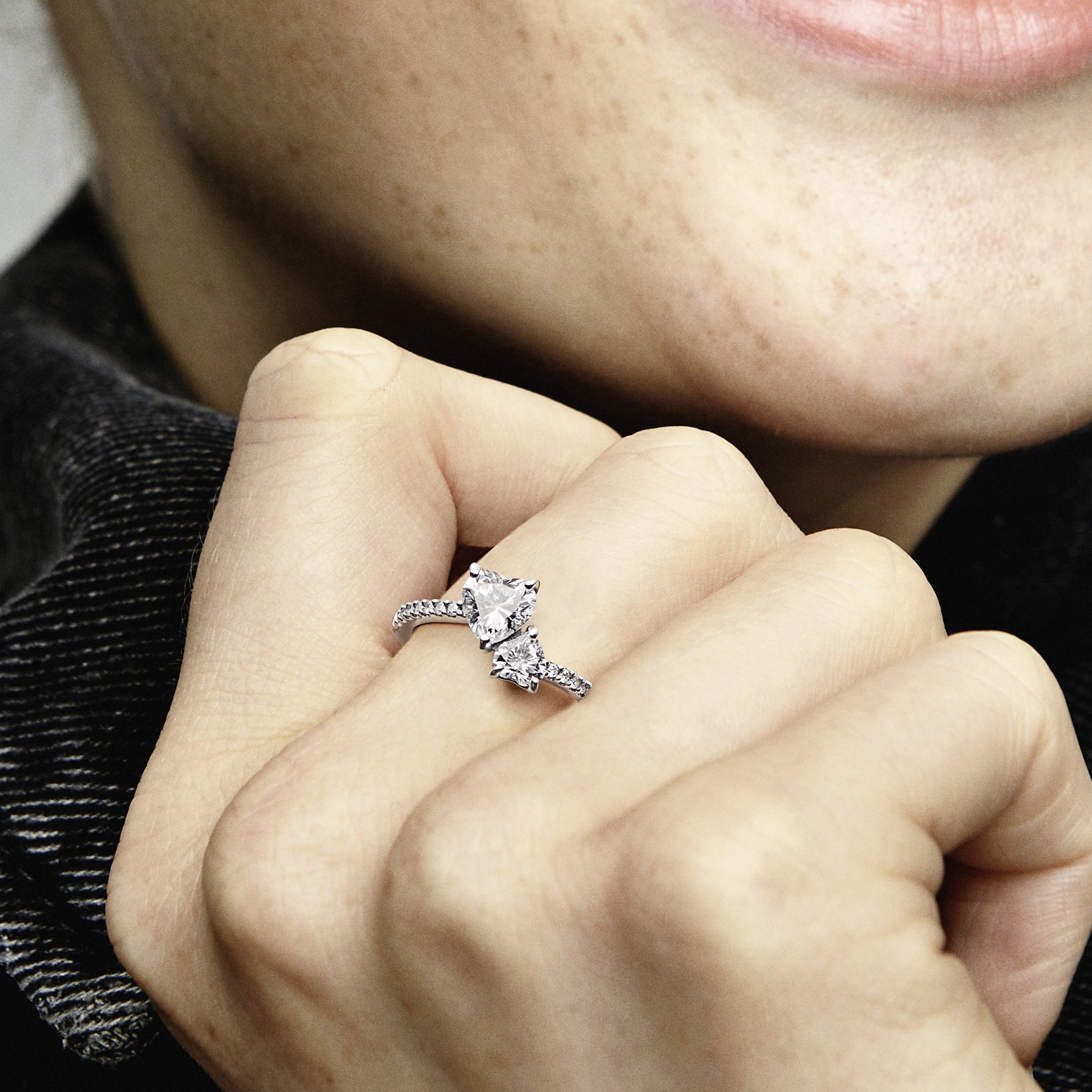 Double Heart Sterling Silver Ring With Clear Cubic Zirconia