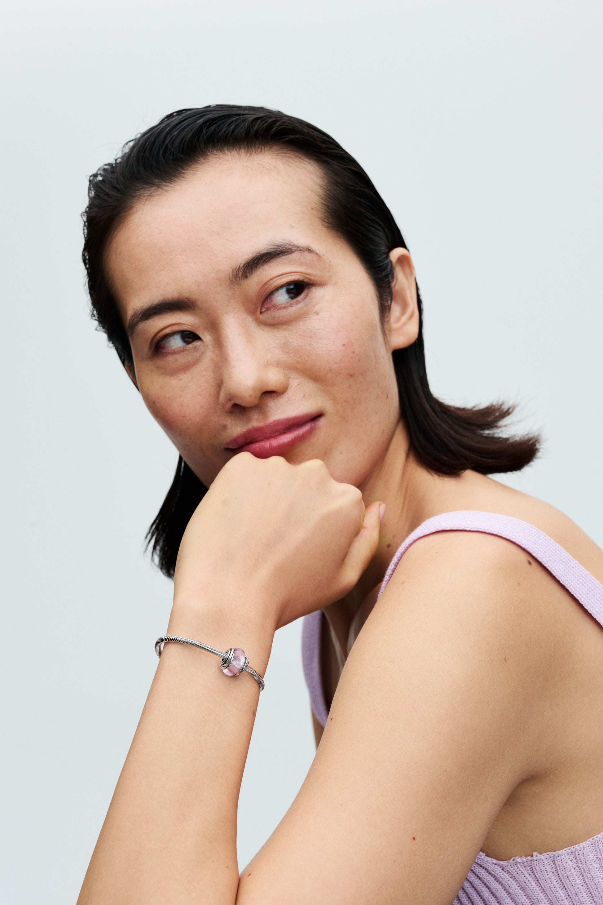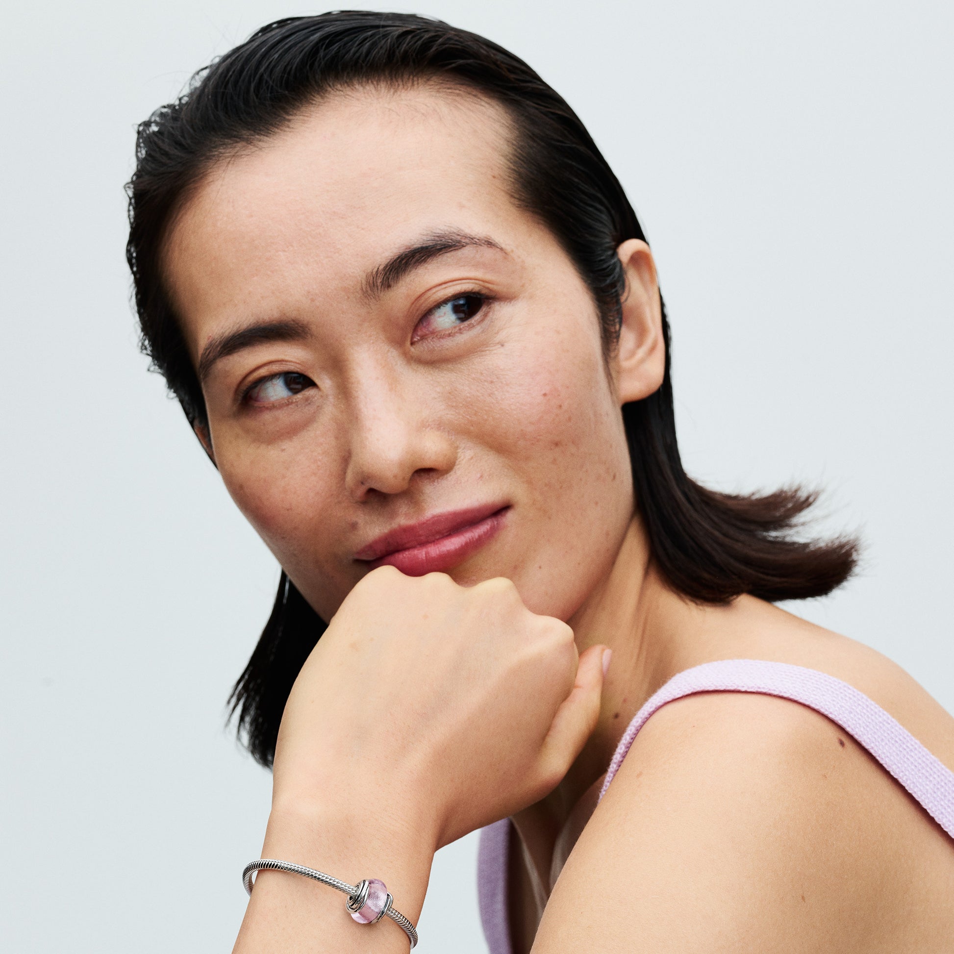 Encircled Sterling Silver Charm With Pink Murano Glass And Silver Foil