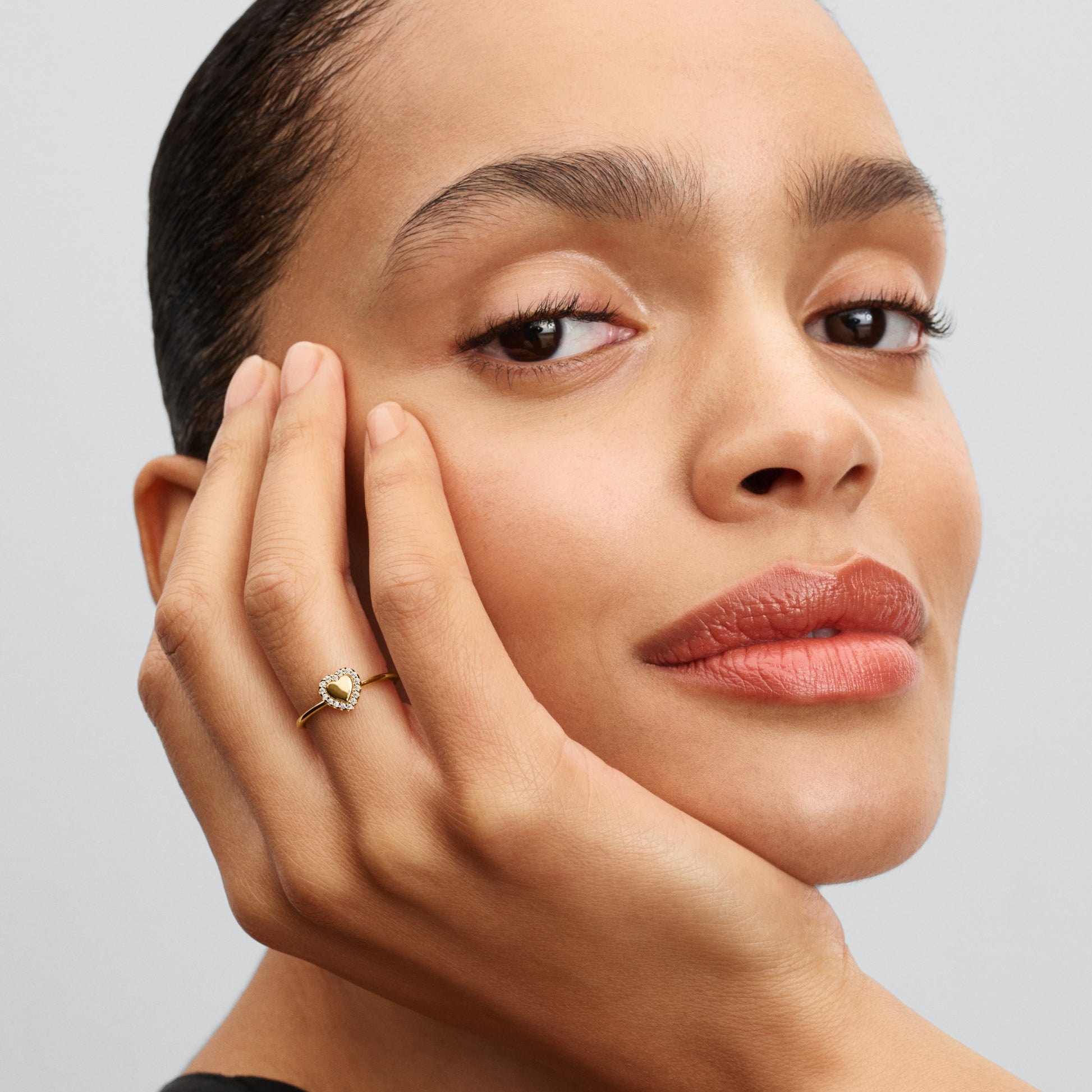 Engravable Heart 14K Gold-Plated Ring With Clear Cubic Zirconia