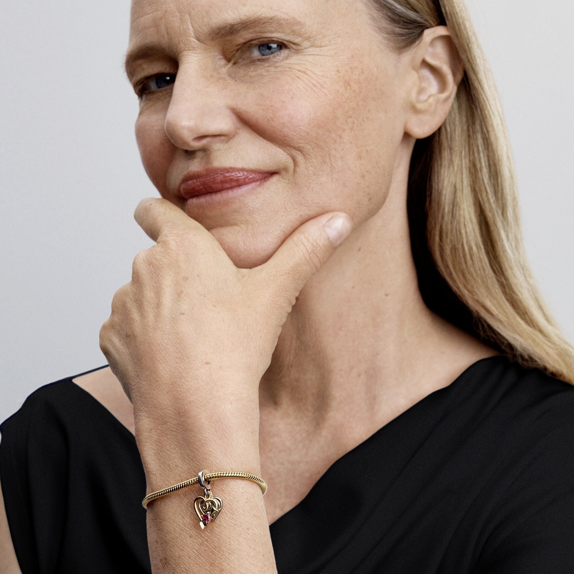 Engravable Heart And Arrow Sterling Silver And 14K Gold-Plated Double Dangle With Red Cubic Zirconia