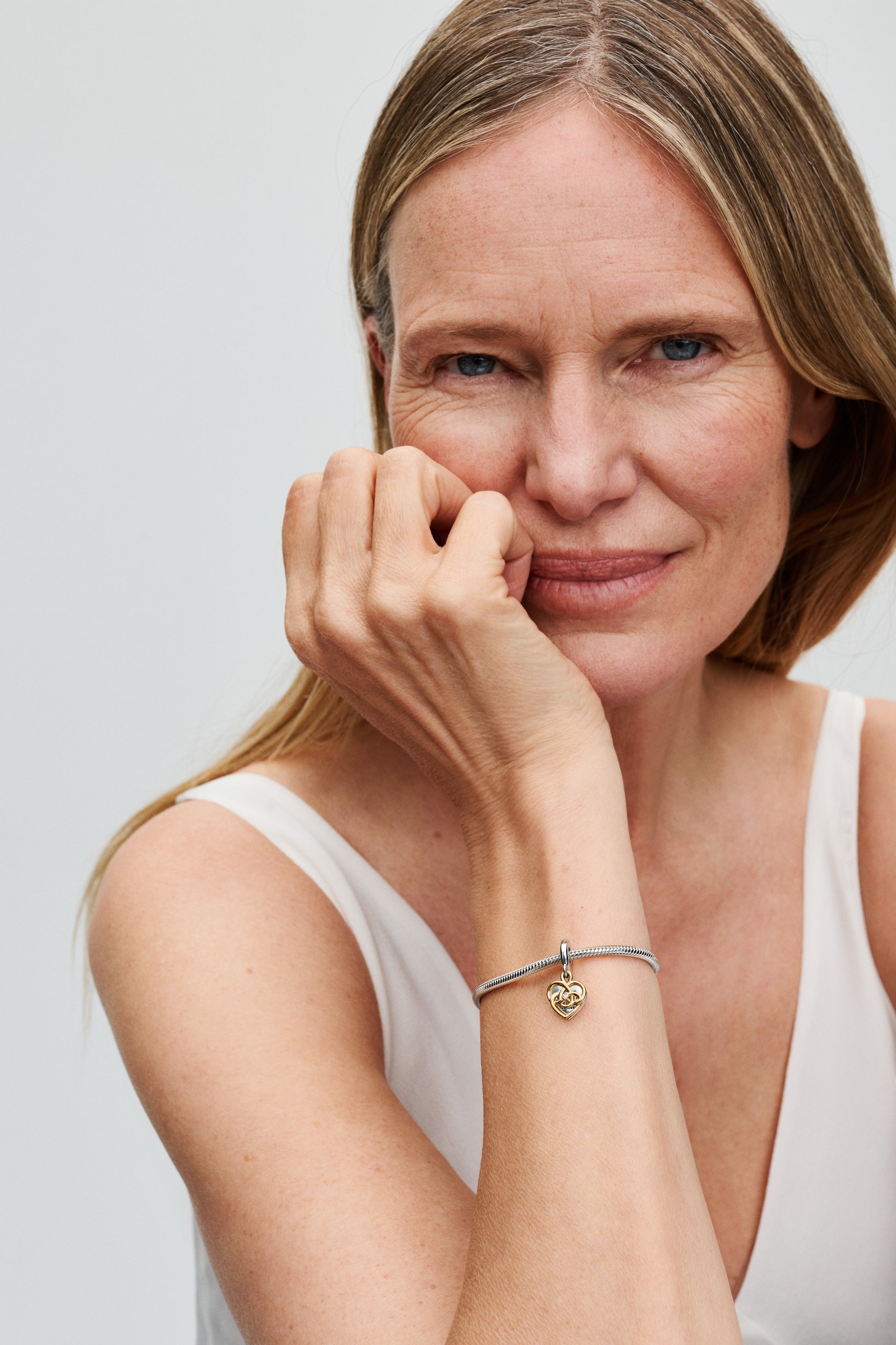Engravable Heart Sterling Silver And 14K Gold-Plated Double Dangle With 0.009 Ct Tw Ghi Vs2+Round Brilliant-Cut Lab-Grown Diamond