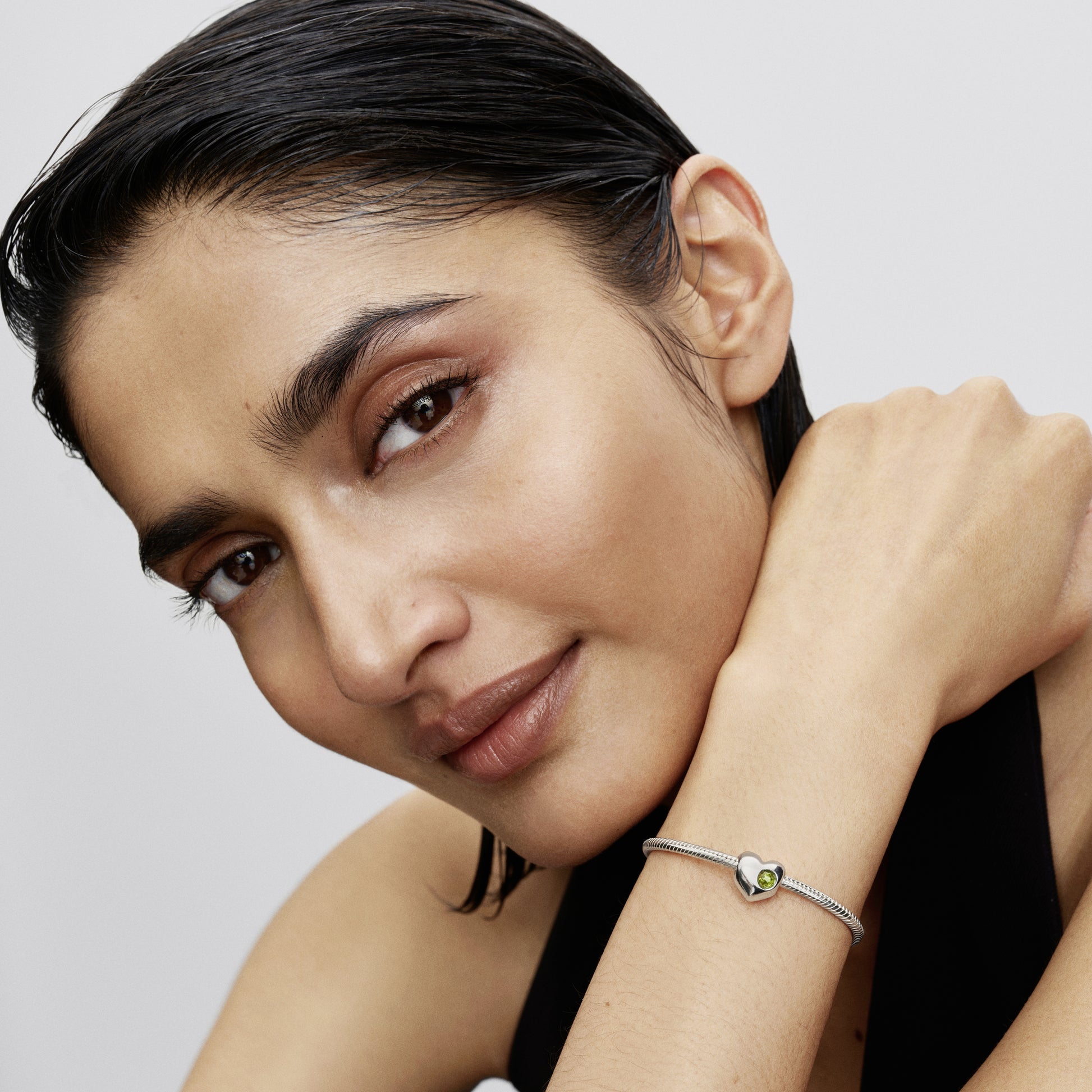 Engravable Heart Sterling Silver Charm With Spring Green Crystal