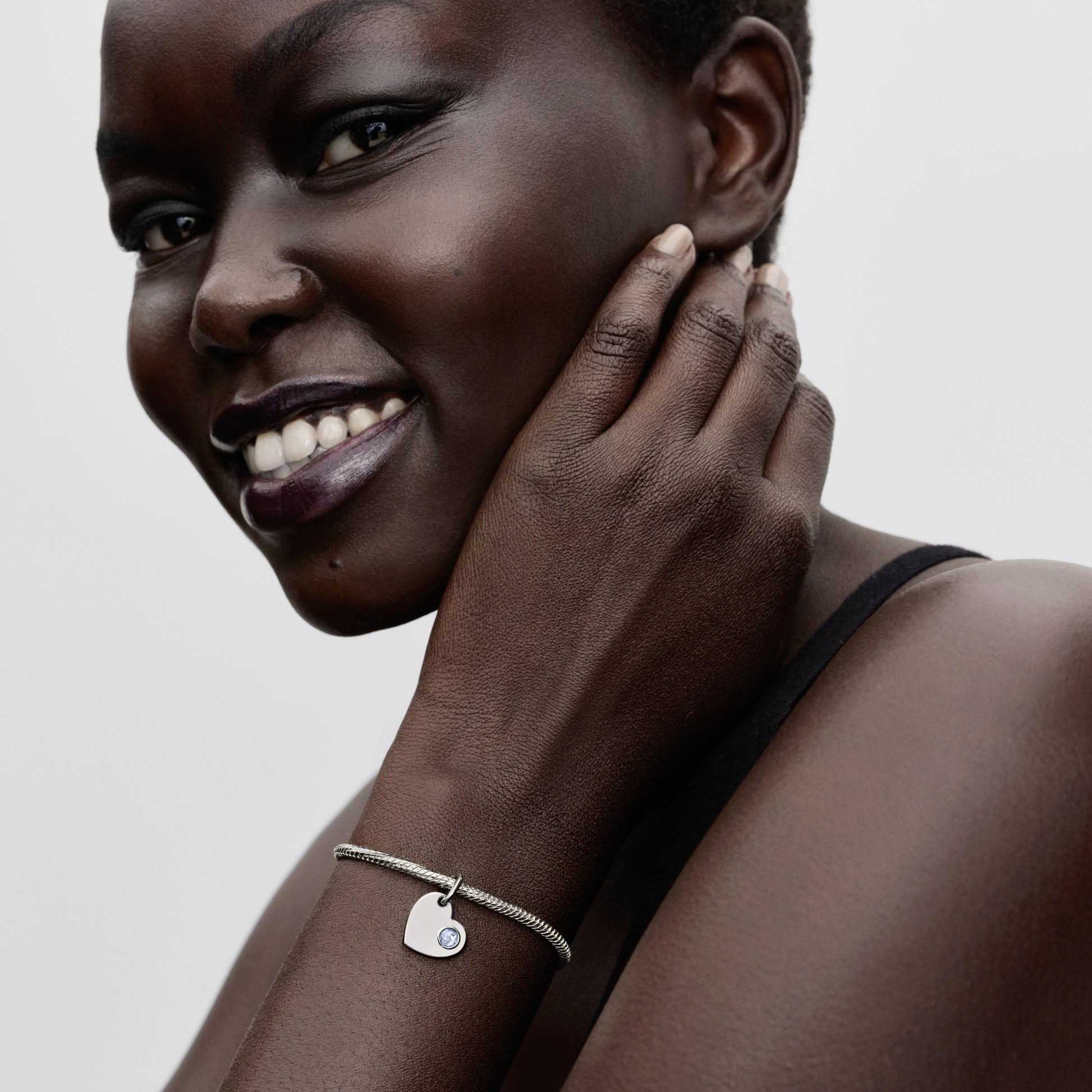 Engravable Heart Sterling Silver Dangle With Sea Aqua Blue Crystal