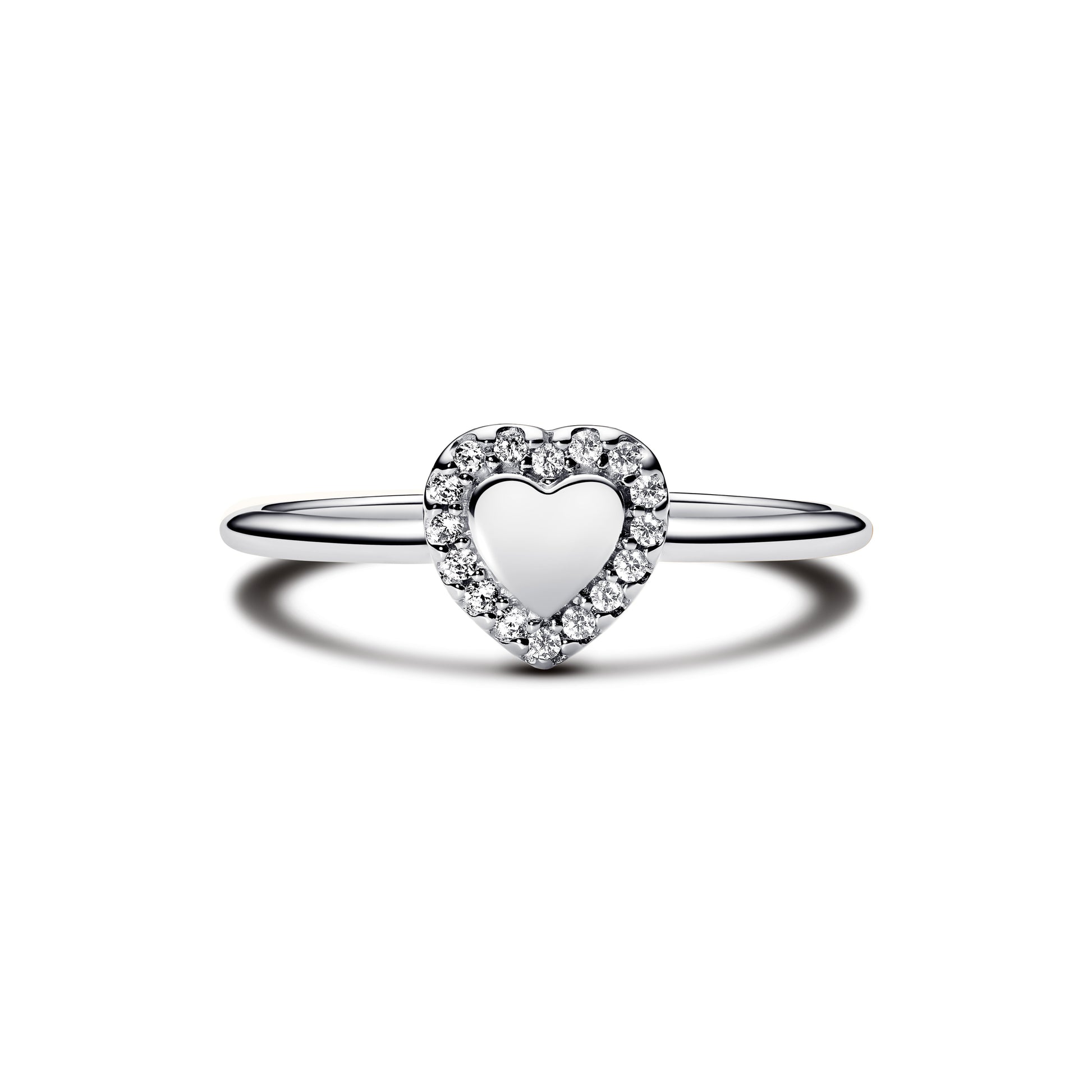 Engravable Heart Sterling Silver Ring With Clear Cubic Zirconia