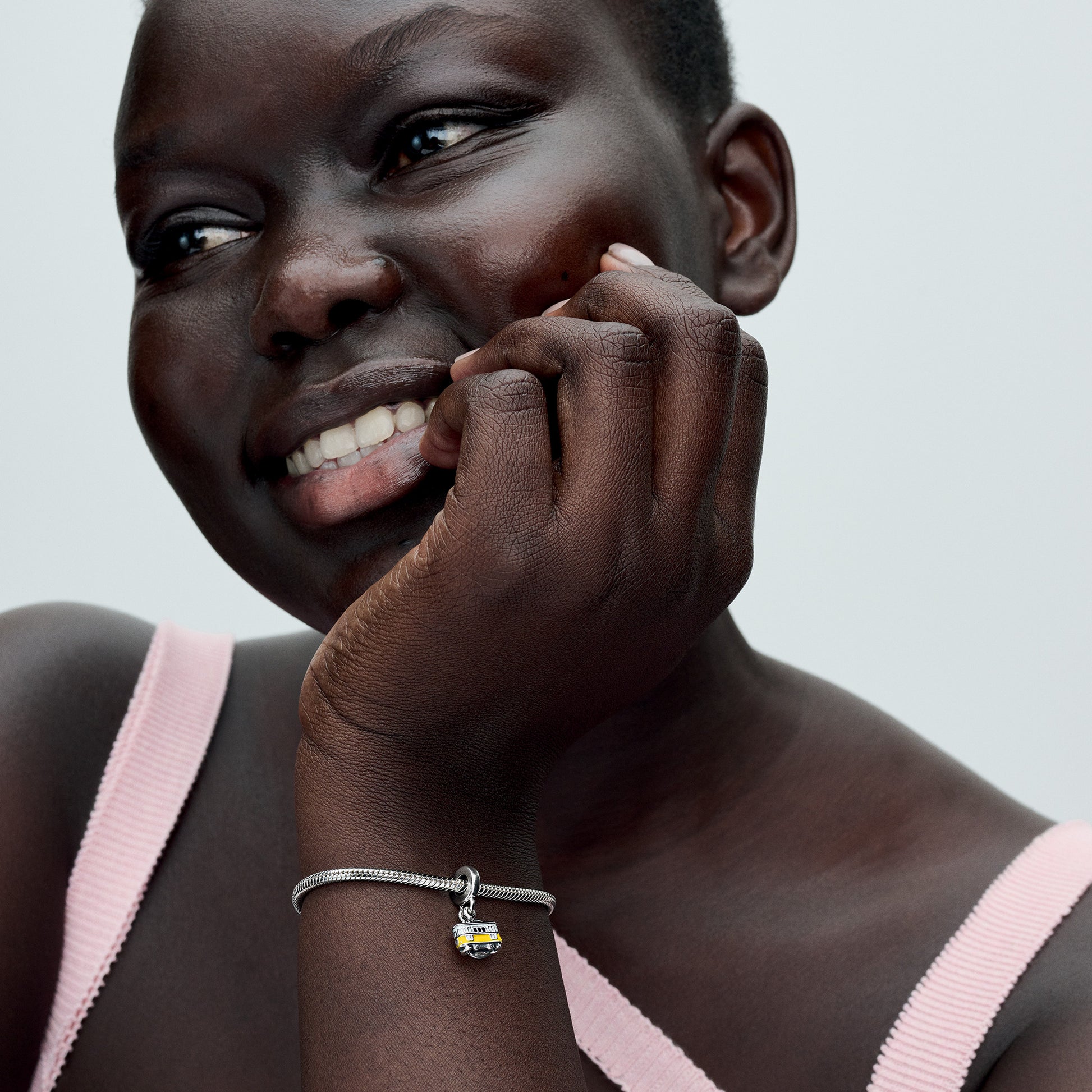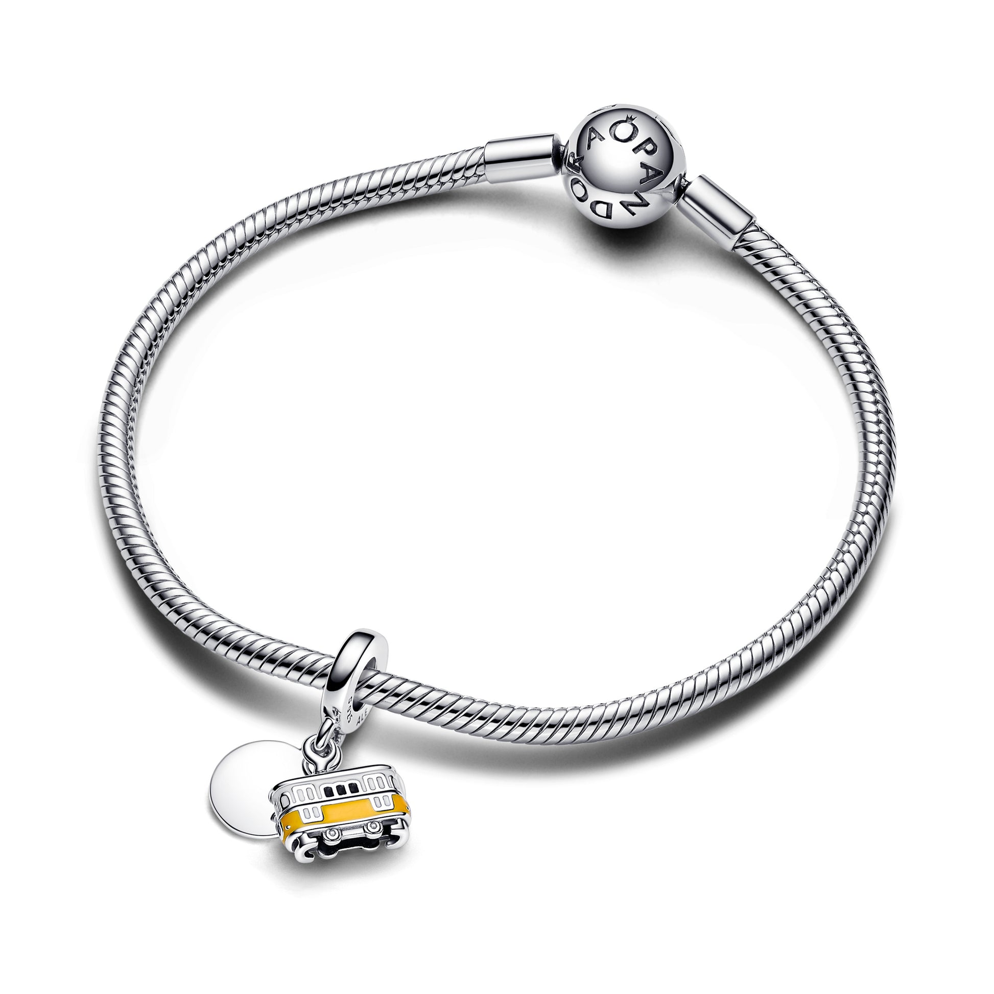 Engravable Lisbon Tram Sterling Silver Double Dangle With Clear And Red Cubic Zirconia, Yellow And White Enamel
